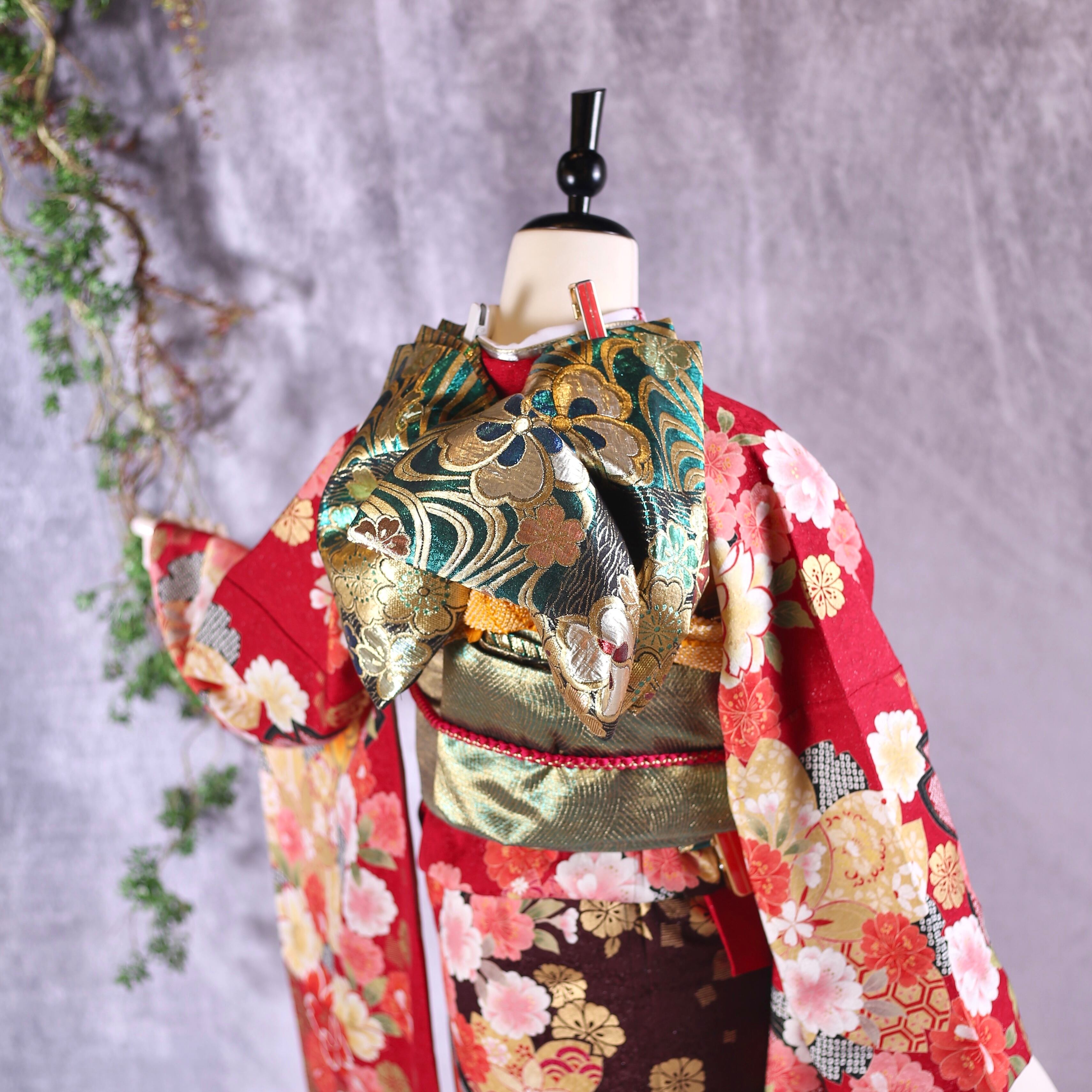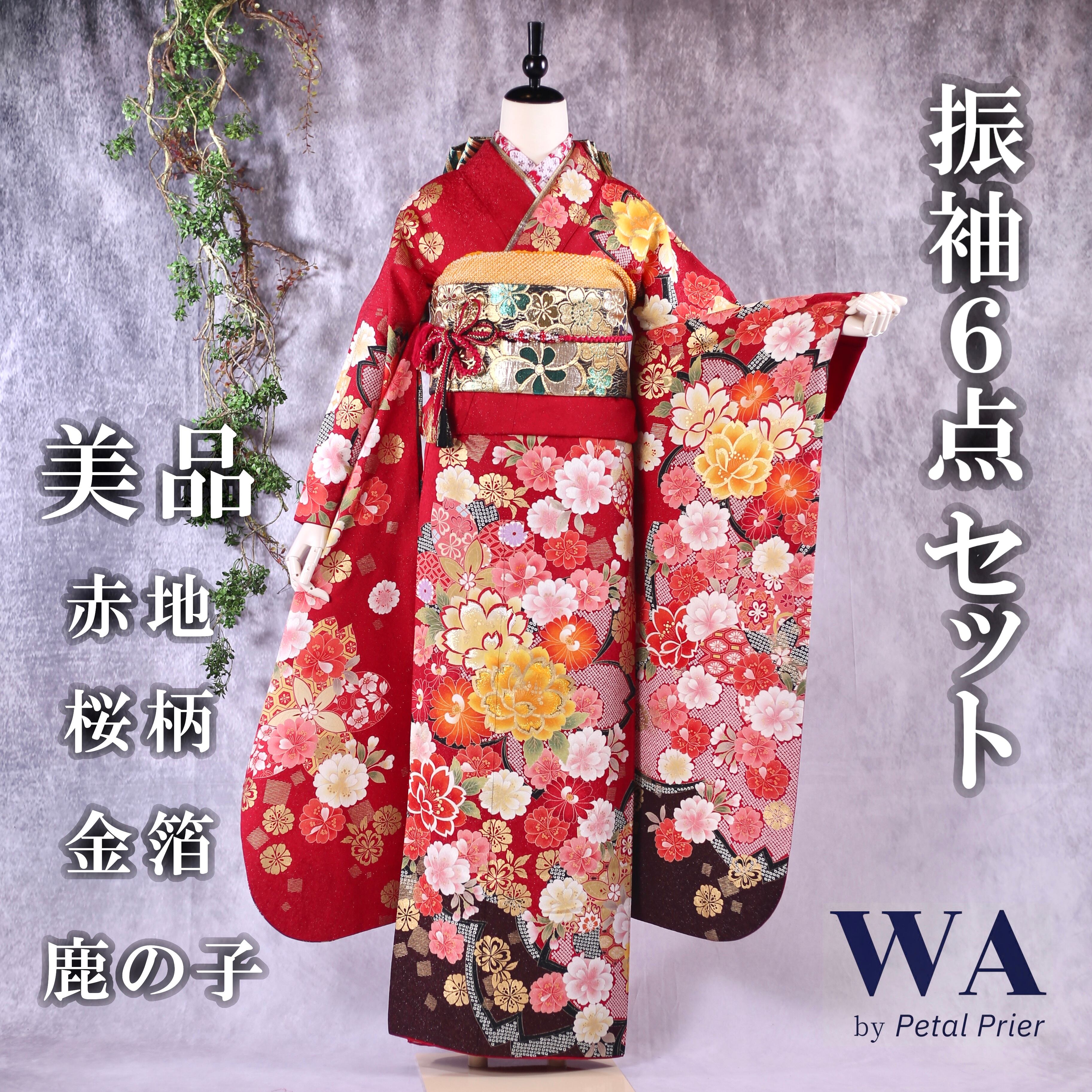 振袖フルセット 振袖セット 振袖 Lサイズ 赤×新古典 美品 成人式 着物 晴れ着 6点セット KFN-40