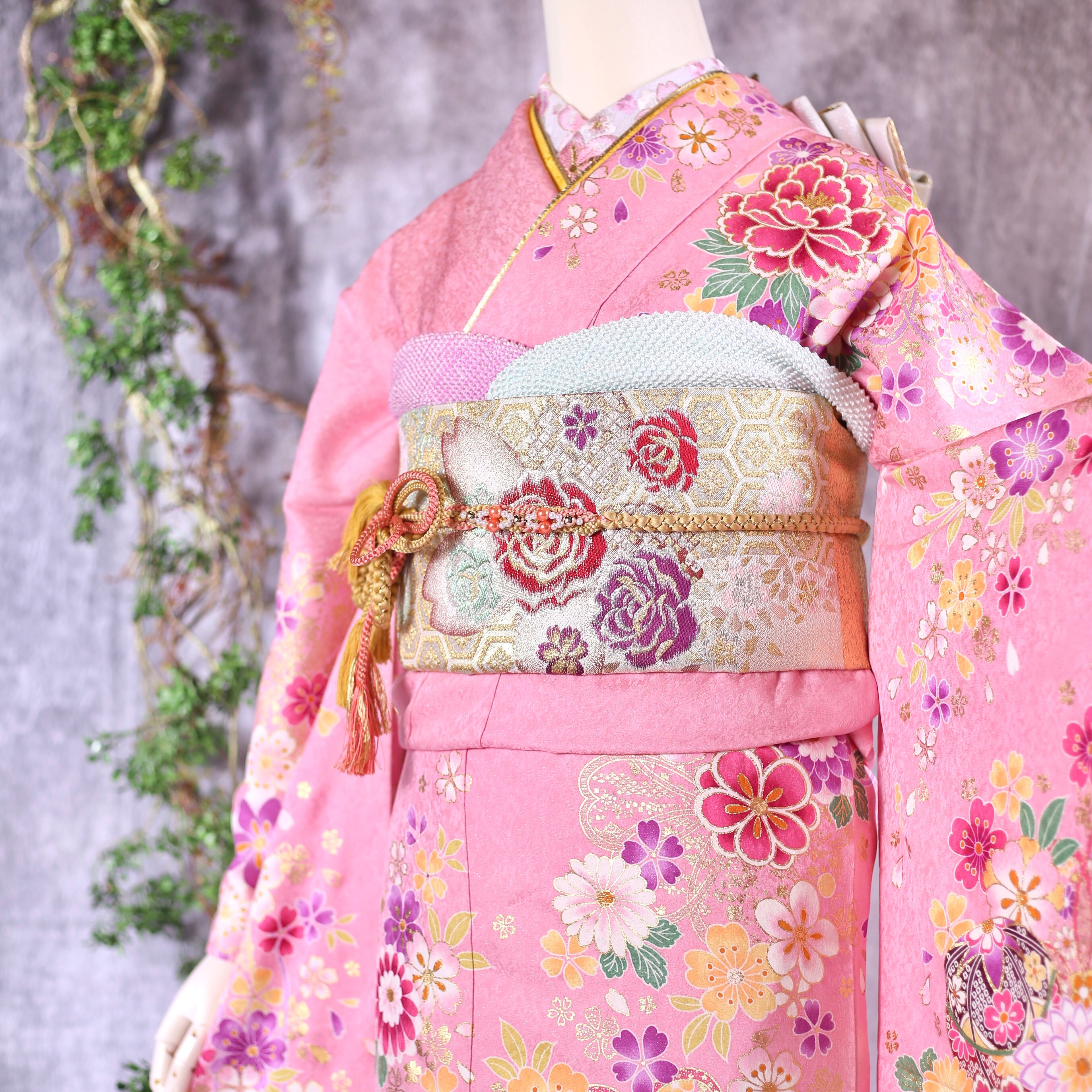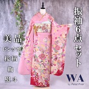 振袖フルセット 振袖セット 振袖 Lサイズ ピンク×桜 美品 成人式 着物 晴れ着 6点セット KFN-73