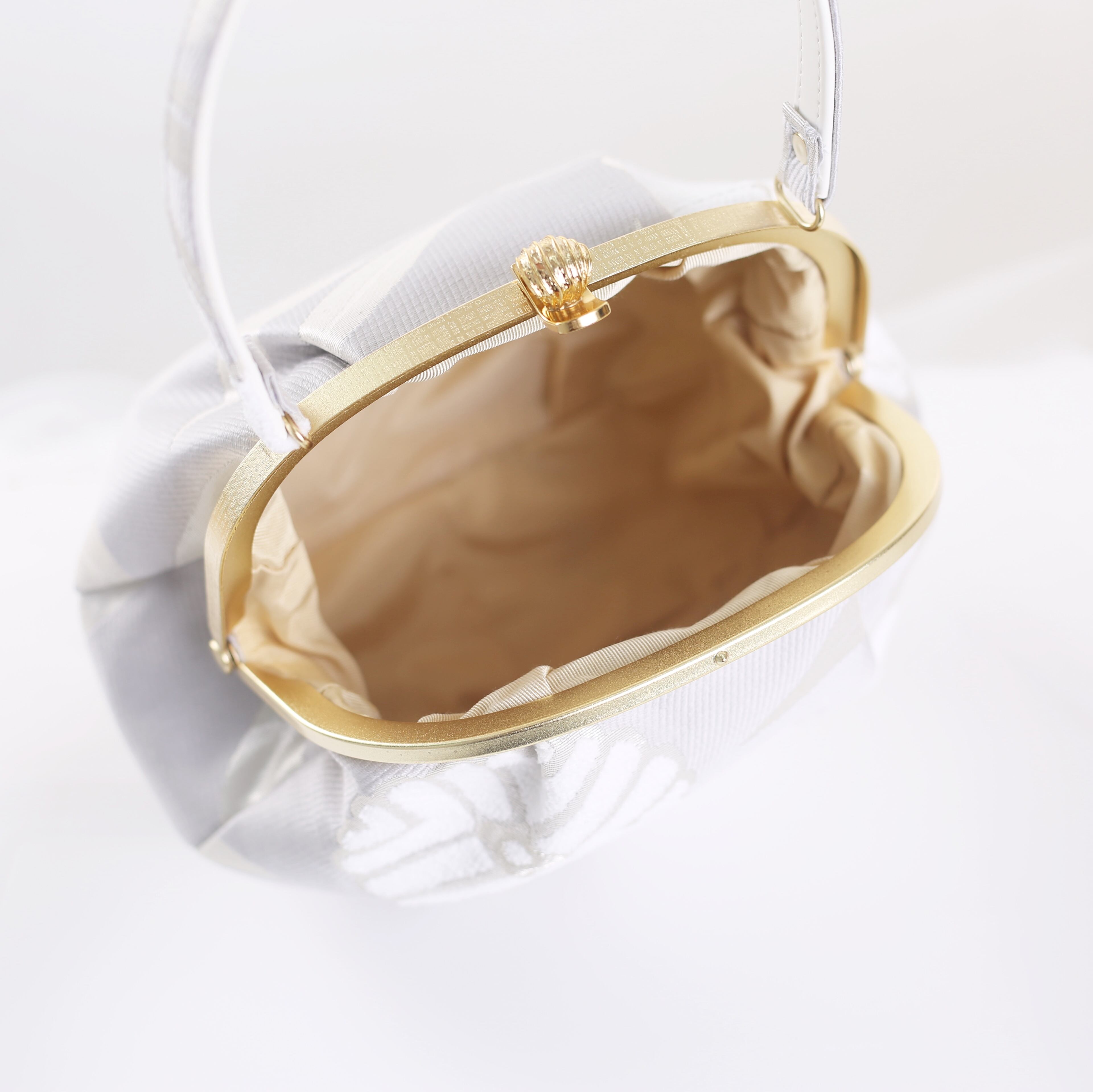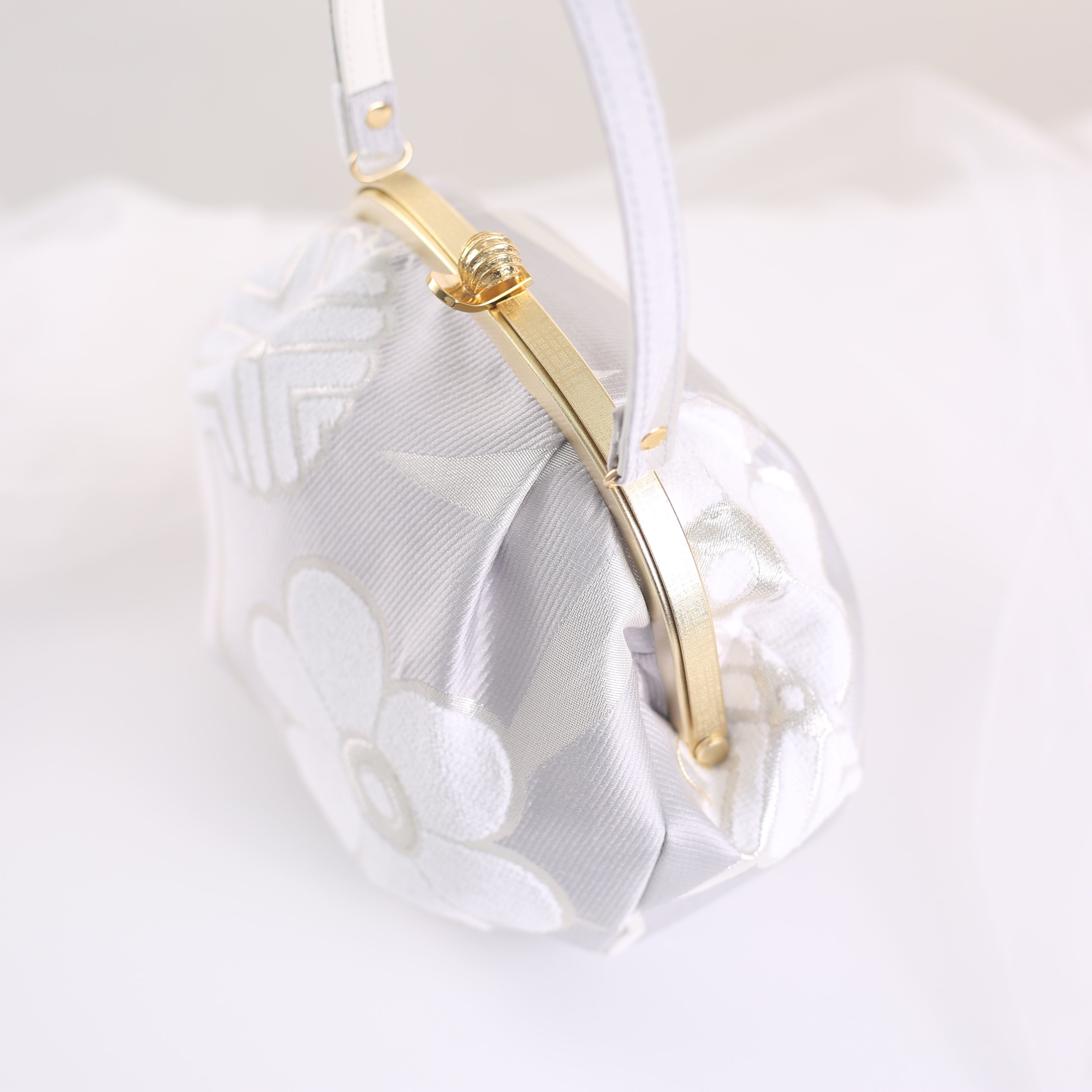 草履バッグ 草履バック 草履バッグセット 新品 成人式 振袖用 振袖 結婚式 卒業式 グレー 白 ホワイト 花 帯地 がま口 レトロ 可愛い Fサイズ フリーサイズ Z-30 | WA by Petal Prier