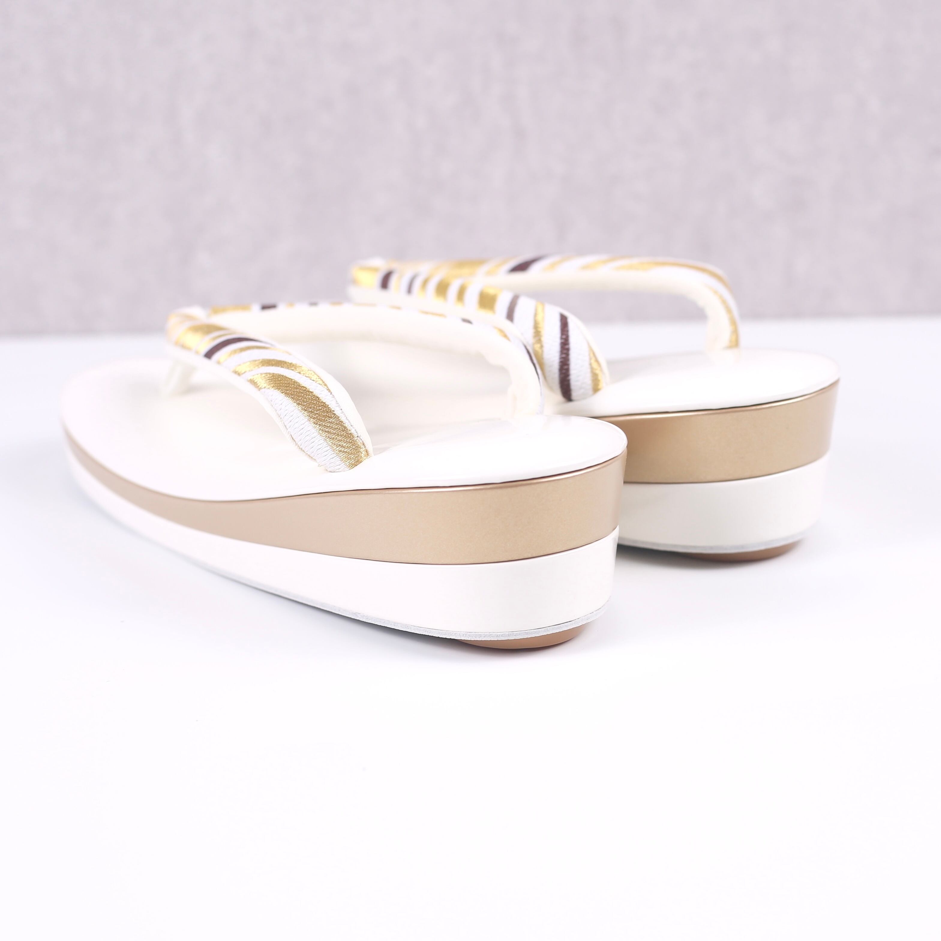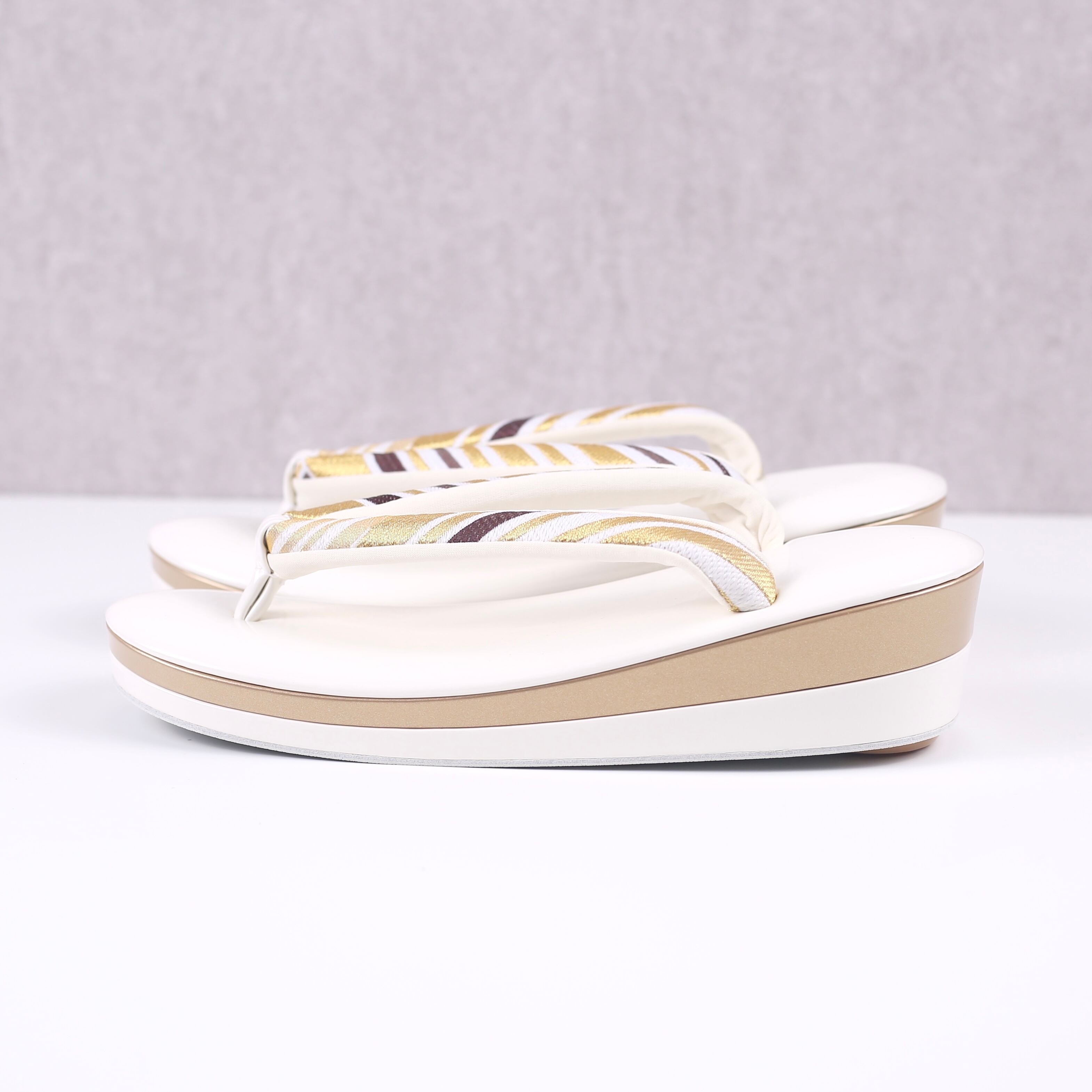 【草履・バッグセット】 ホワイト×ブラウンゴールド