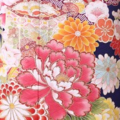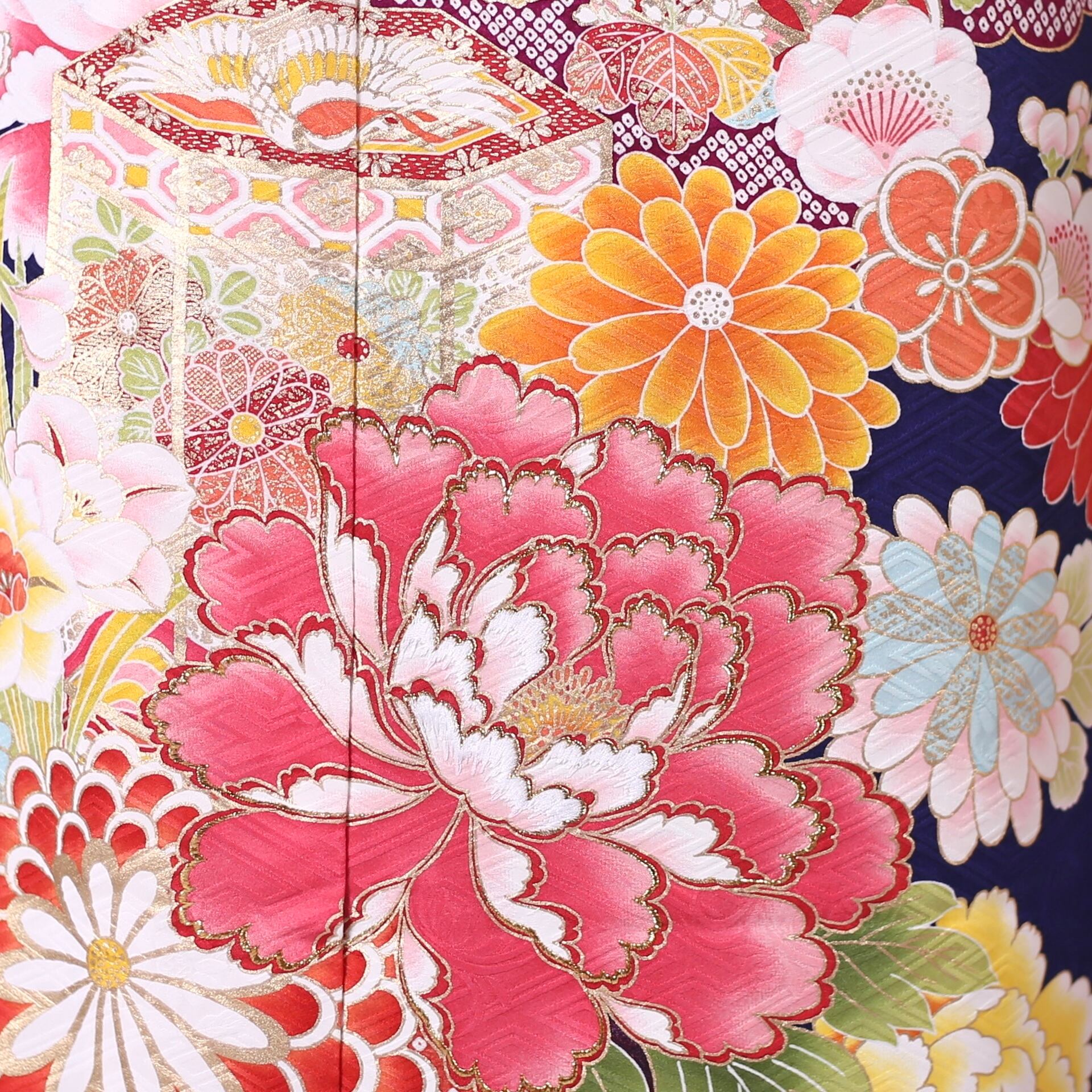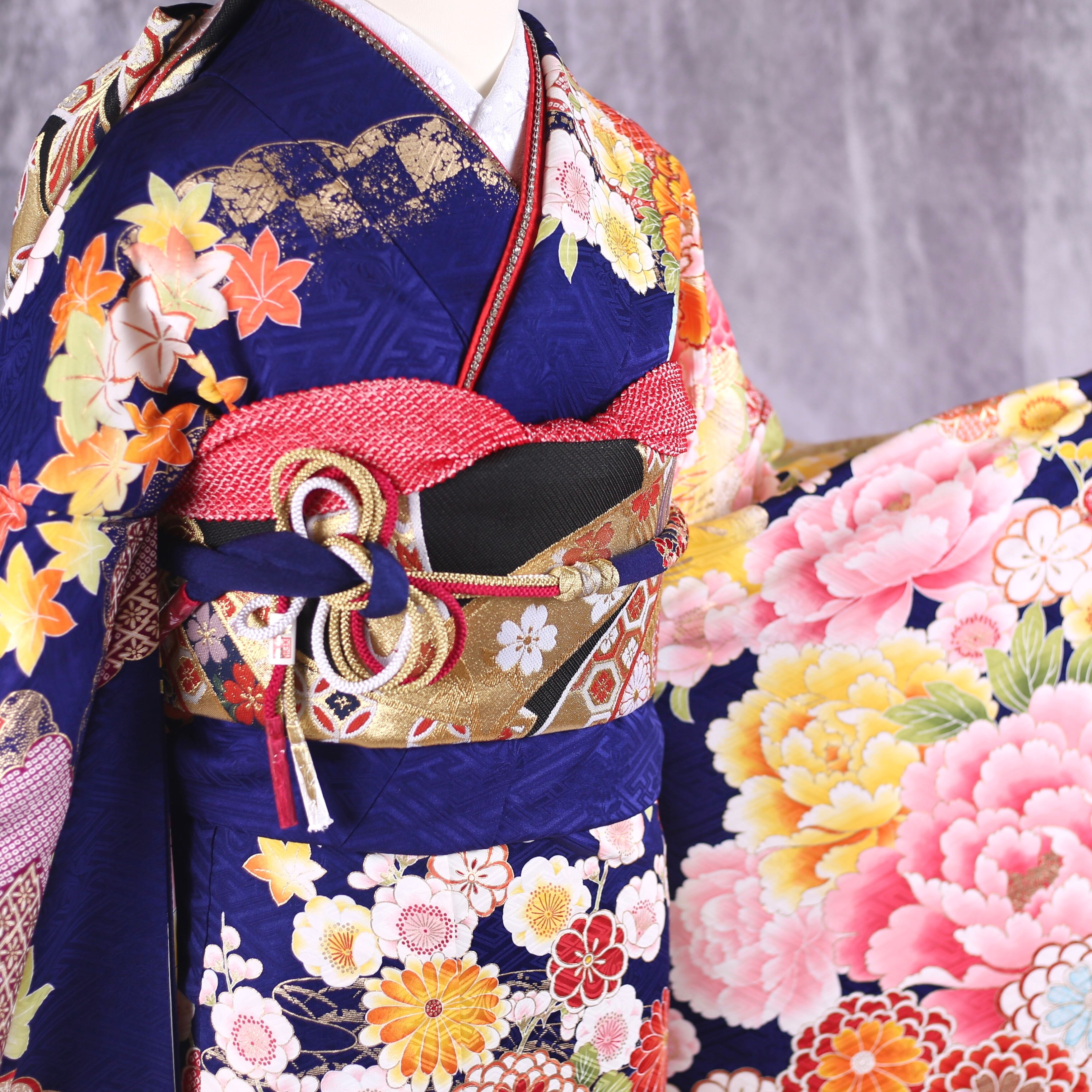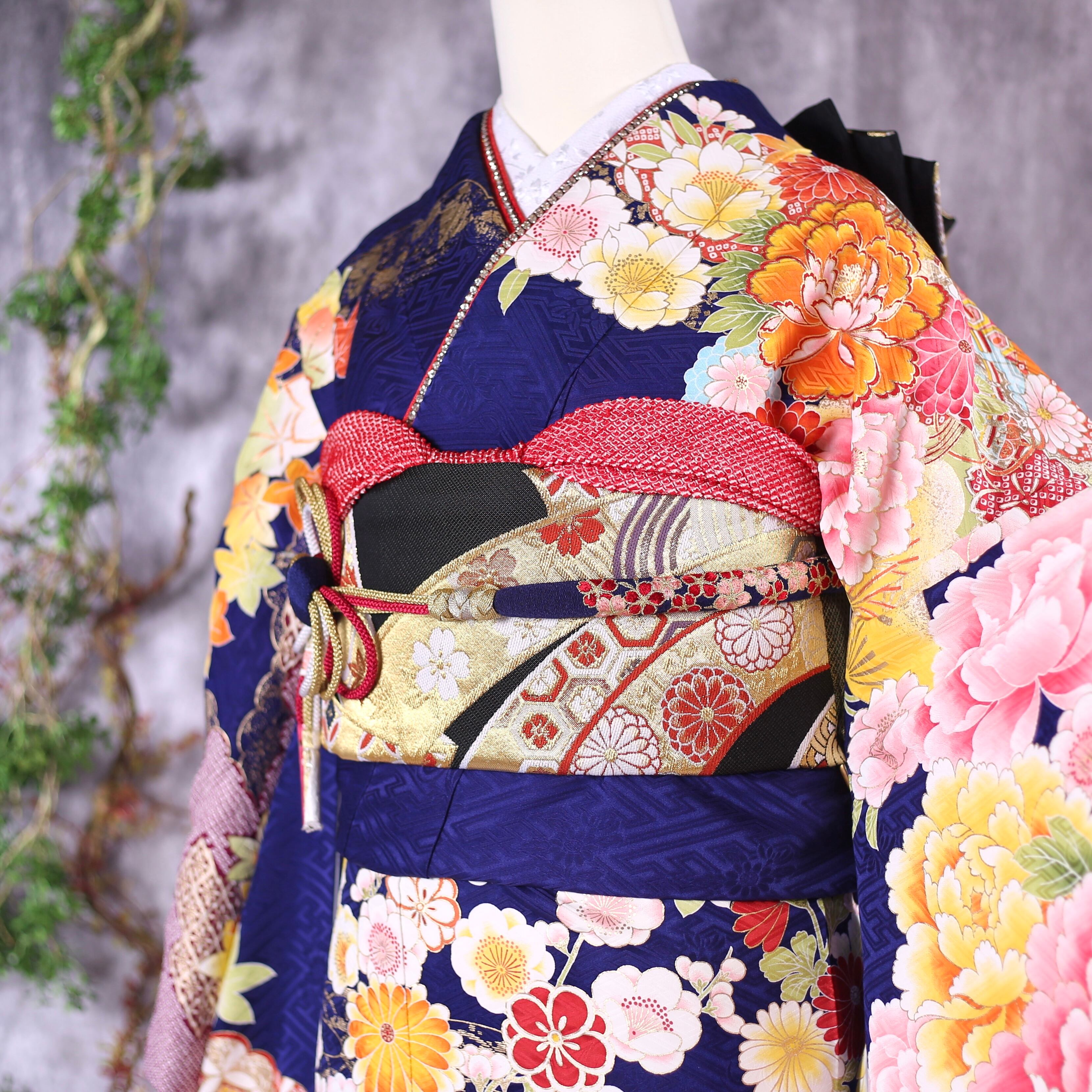 青地を埋め尽くすような鮮やかな牡丹が印象的な古典振袖です。