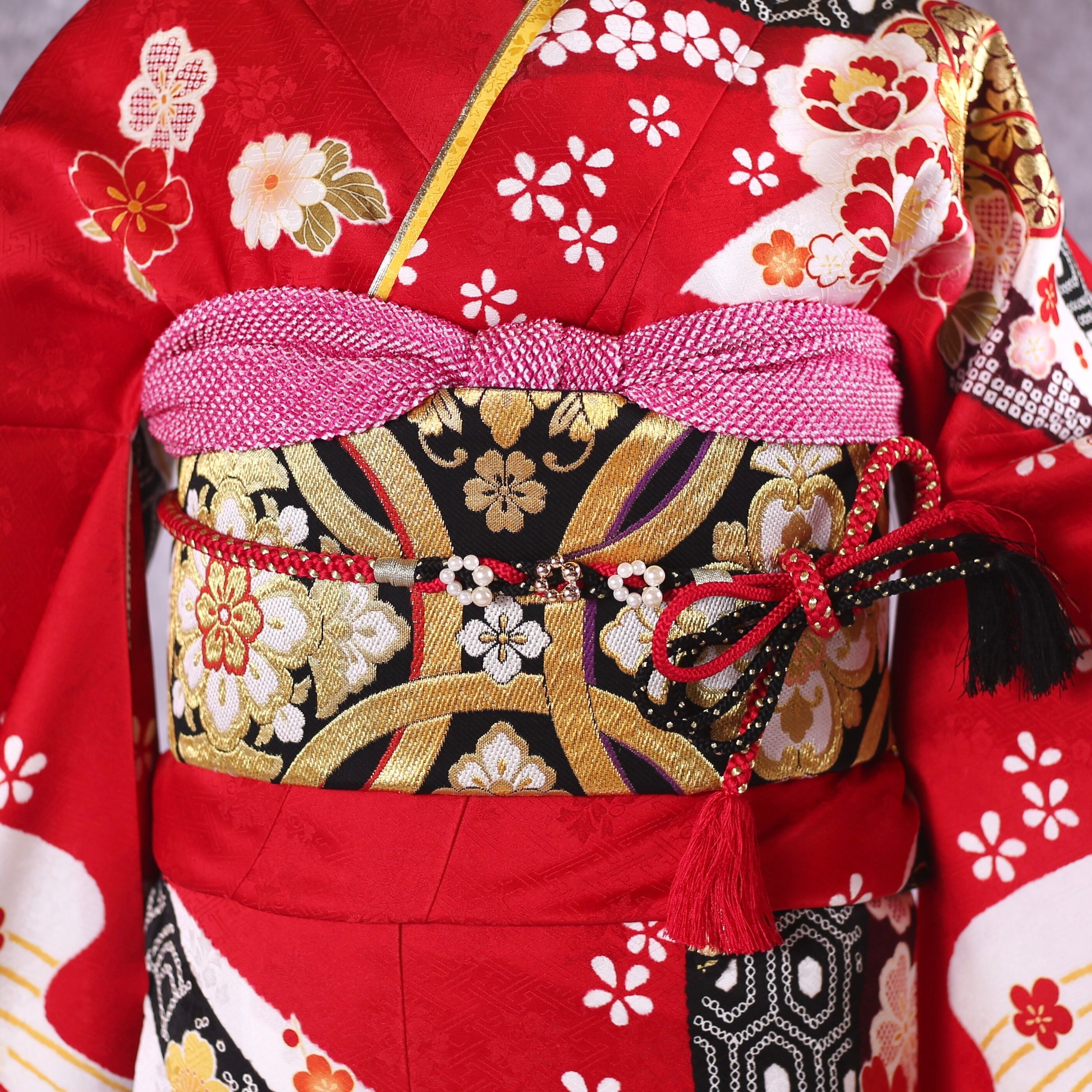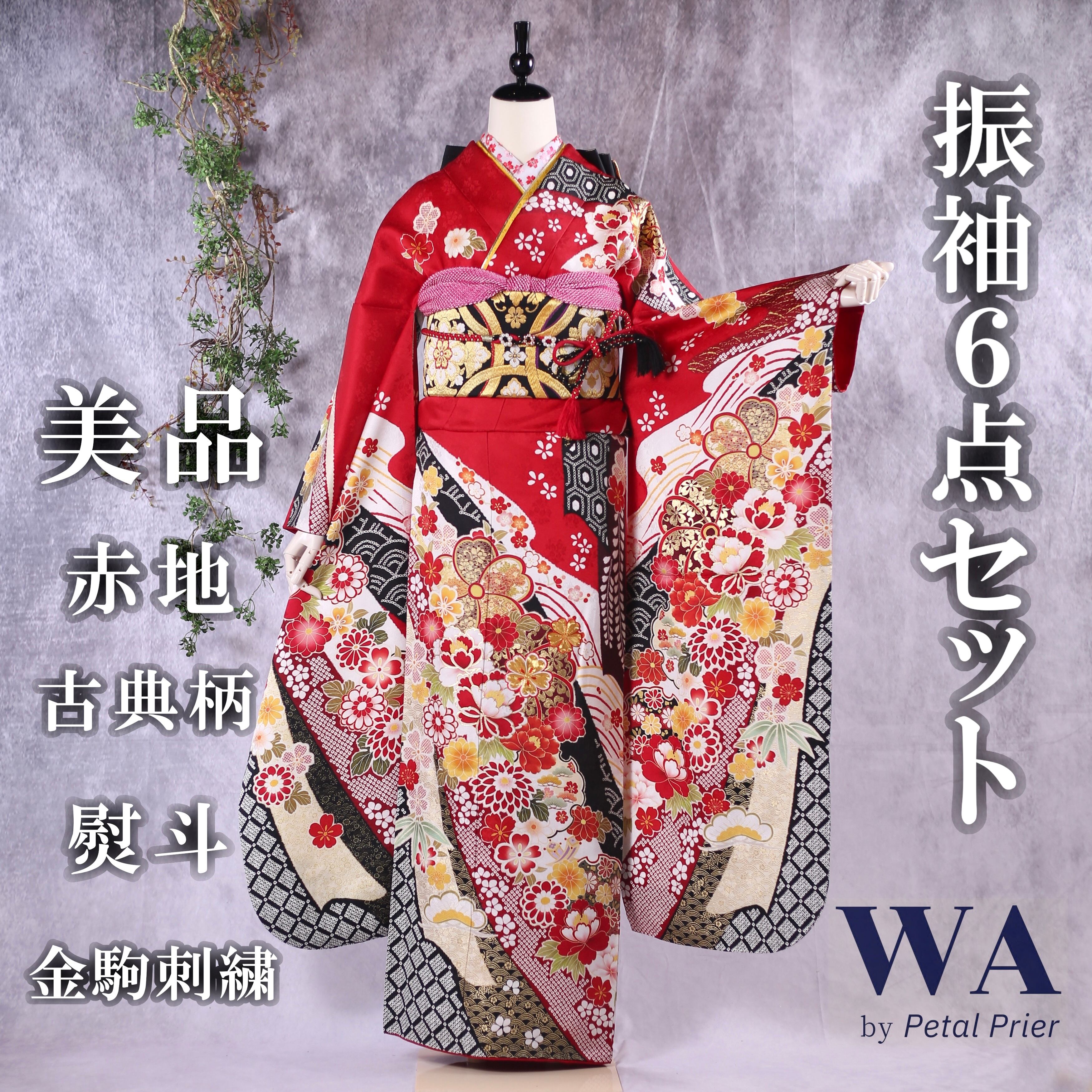 振袖フルセット 振袖セット 振袖 LLサイズ 赤×古典 美品 成人式 着物 晴れ着 6点セット FN-292