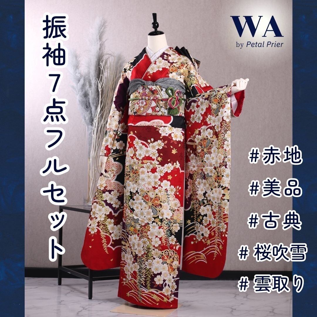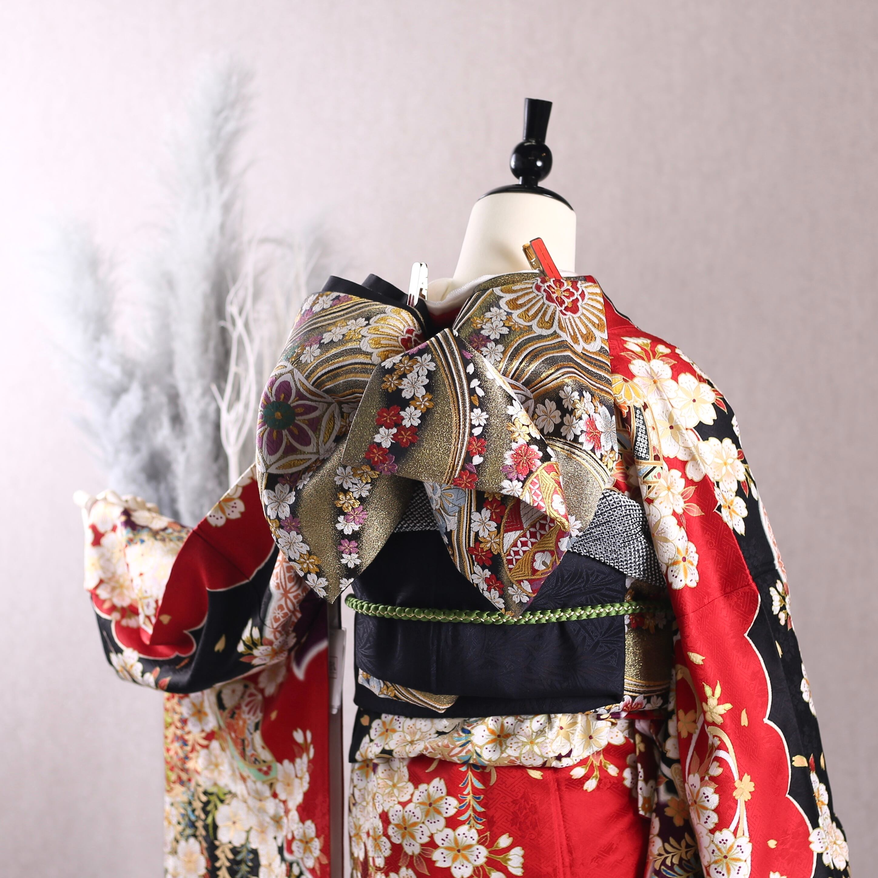 振袖フルセット 振袖セット 振袖 LLサイズ 赤×古典 美品 成人式 着物 晴れ着 7点フルセット F-280