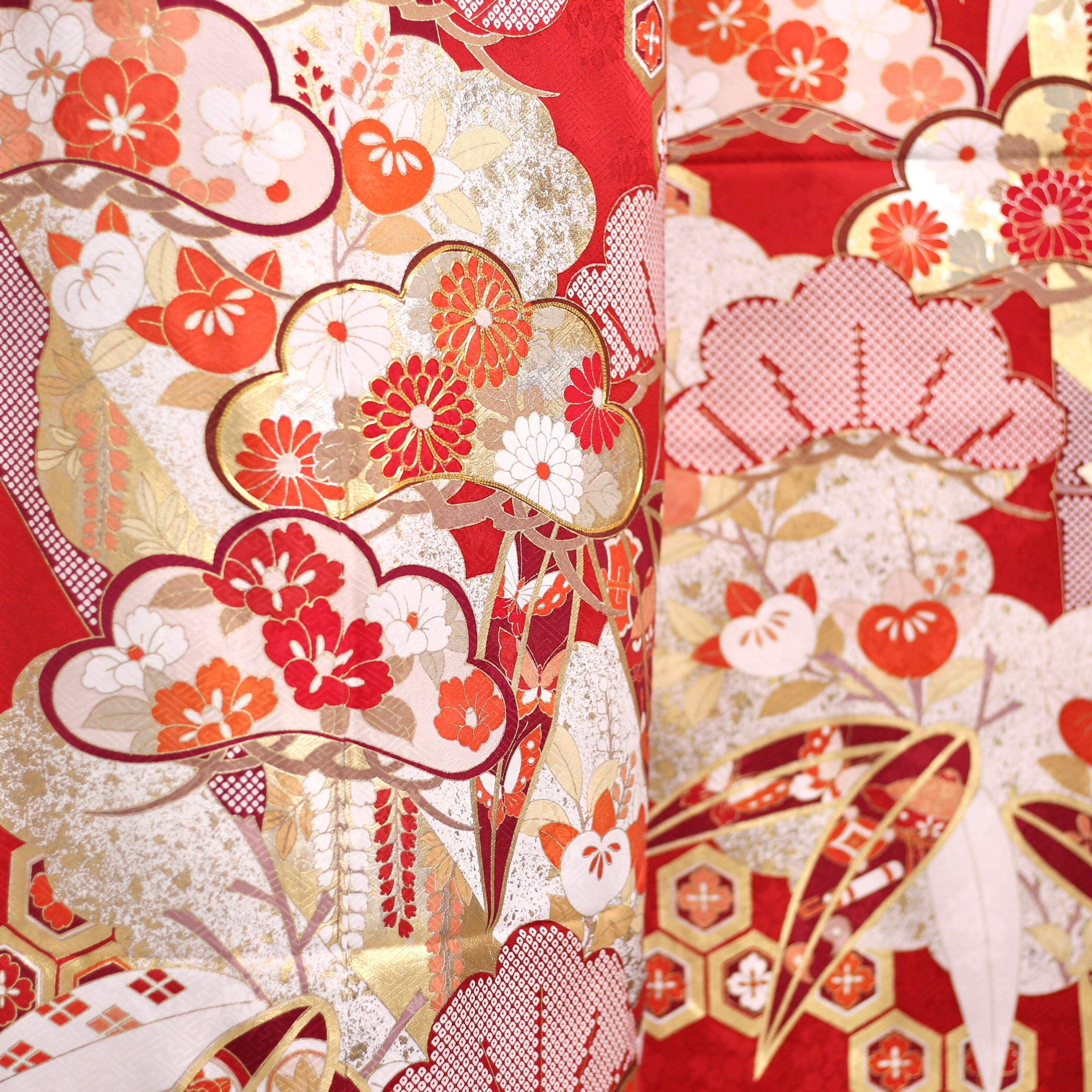 赤地に松竹梅が映えるレトロ古典振袖です。