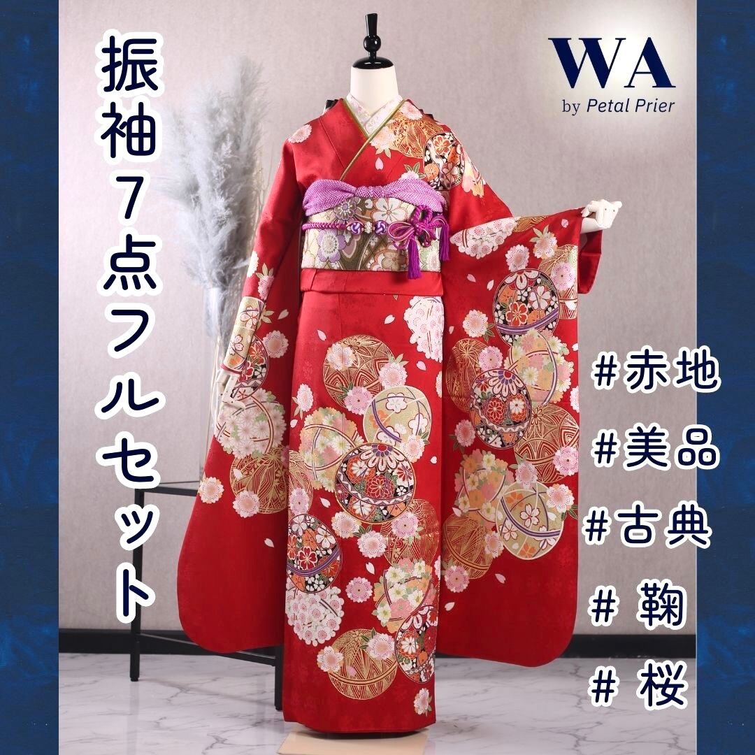 振袖フルセット 振袖セット 振袖 LLサイズ 赤×古典 美品 成人式 着物 晴れ着 7点フルセット F-286