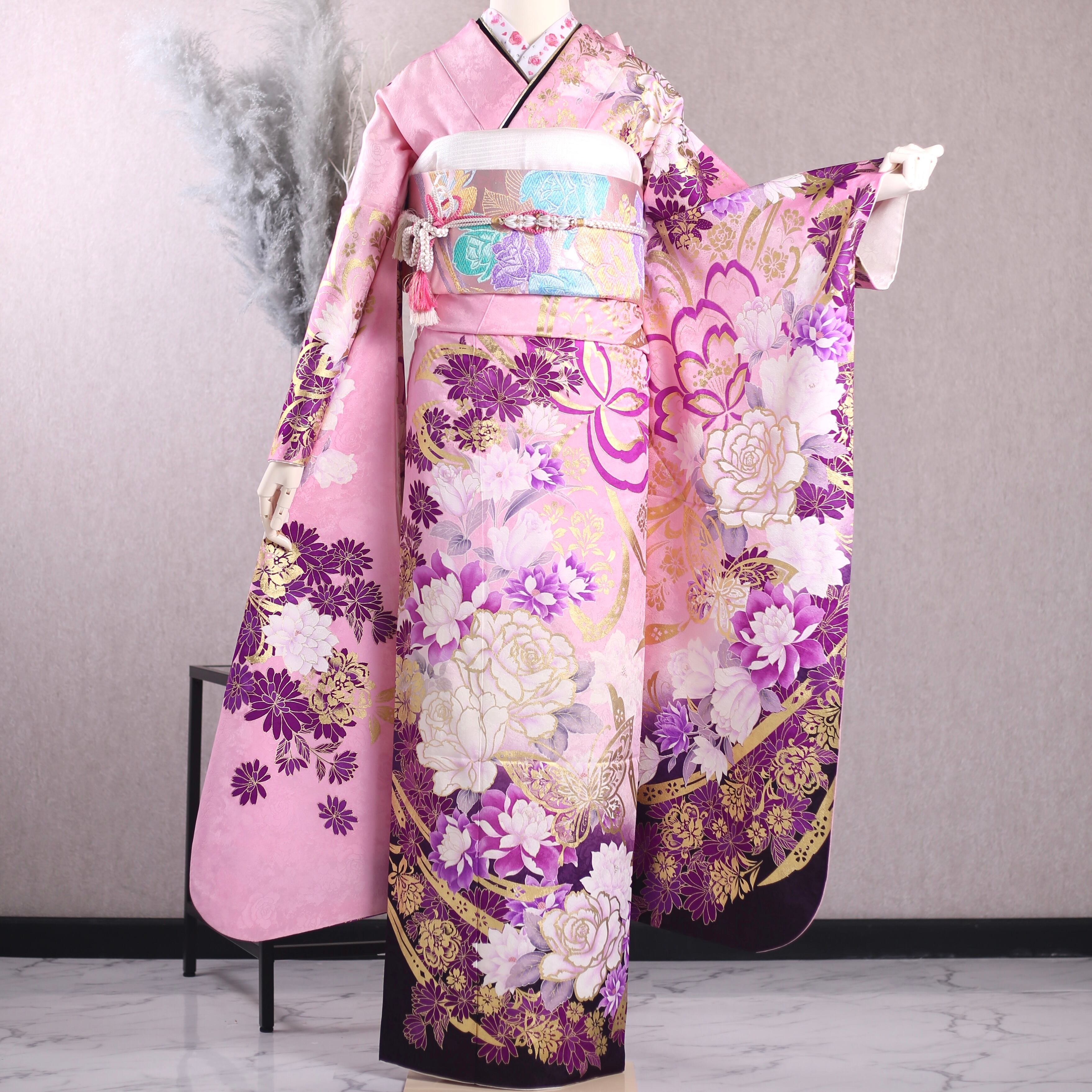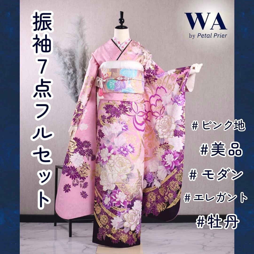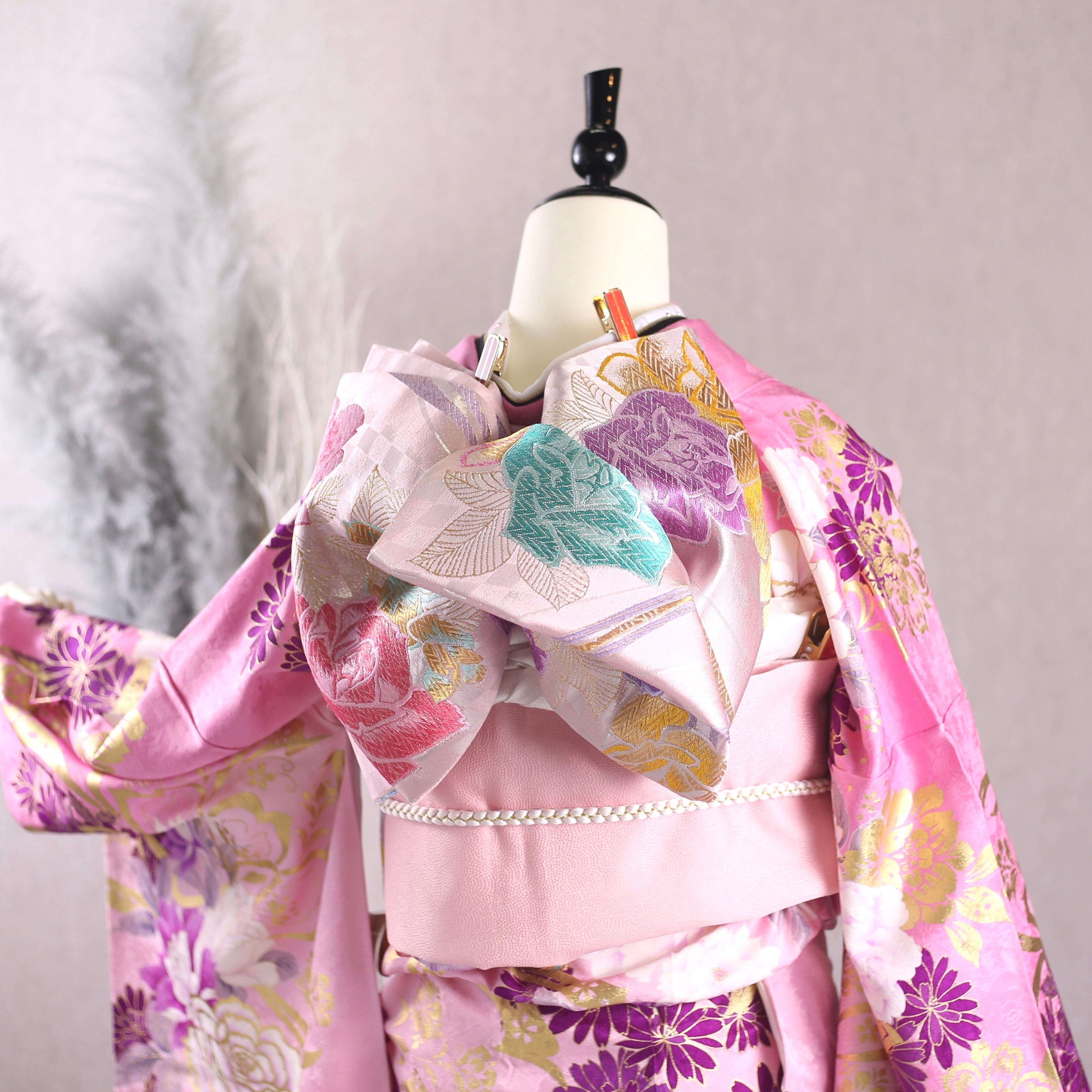 振袖フルセット 振袖セット 振袖 LLサイズ ピンク×エレガント 美品 成人式 着物 晴れ着 7点フルセット KF-104