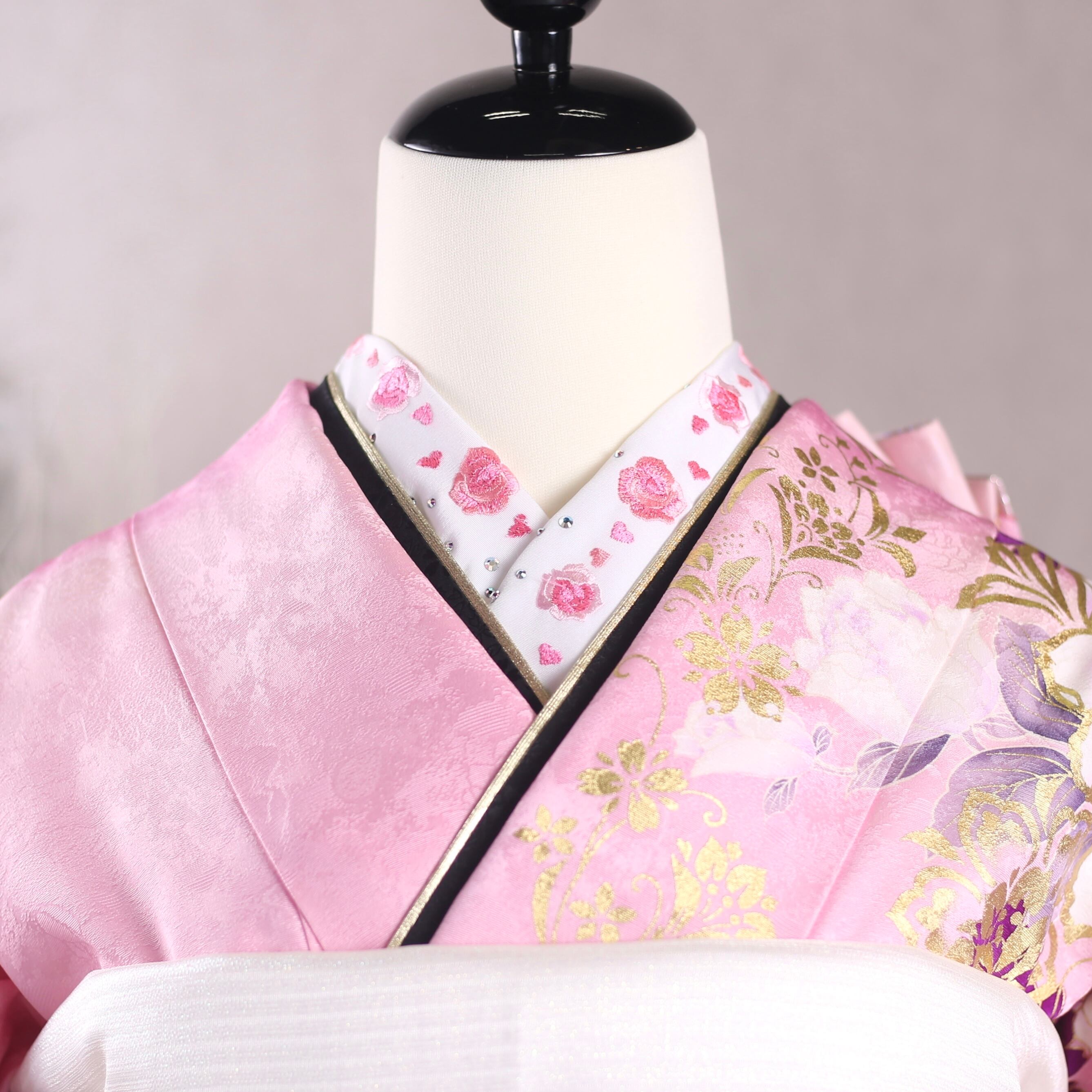 ピンク地に白味の牡丹が印象的なモダン振袖です。