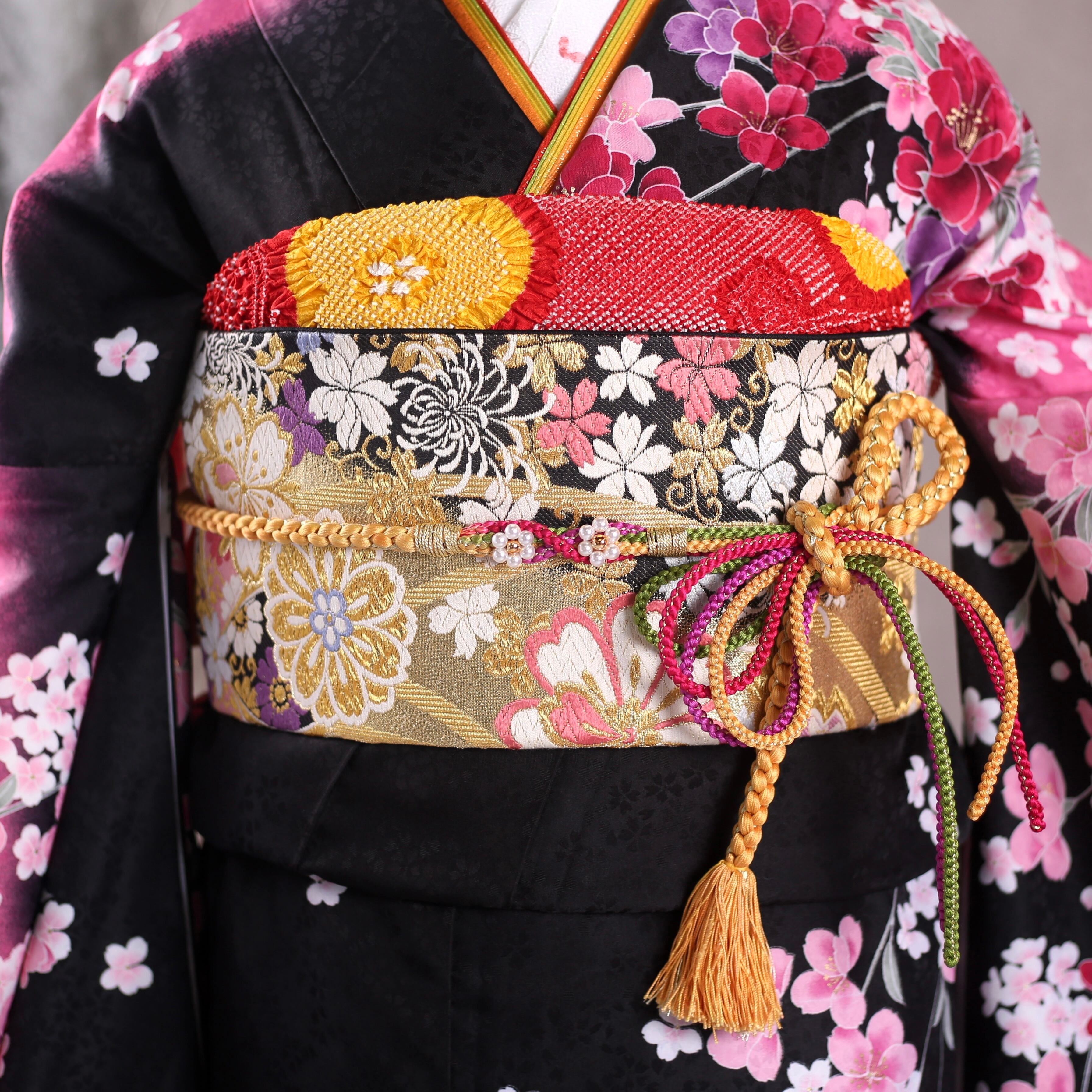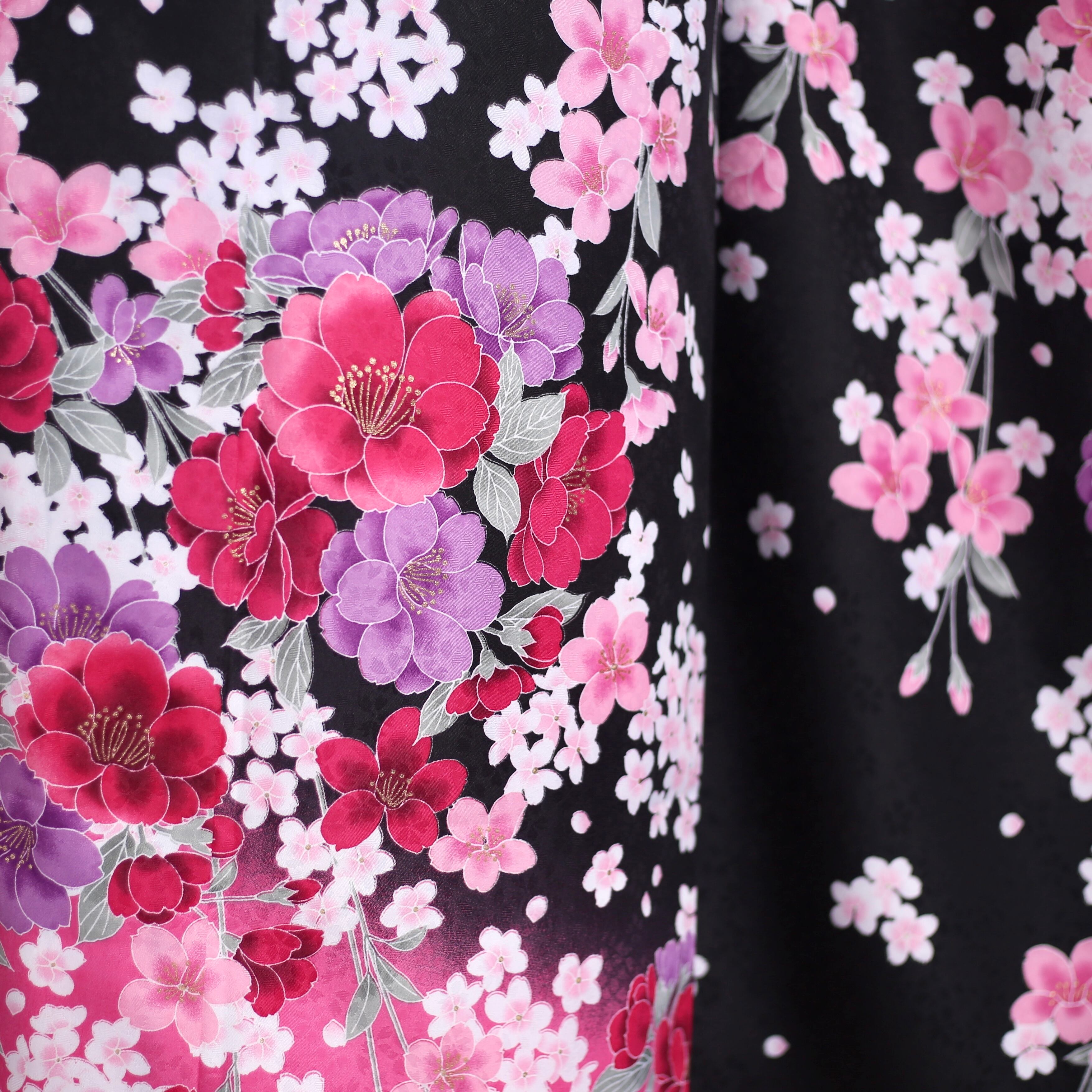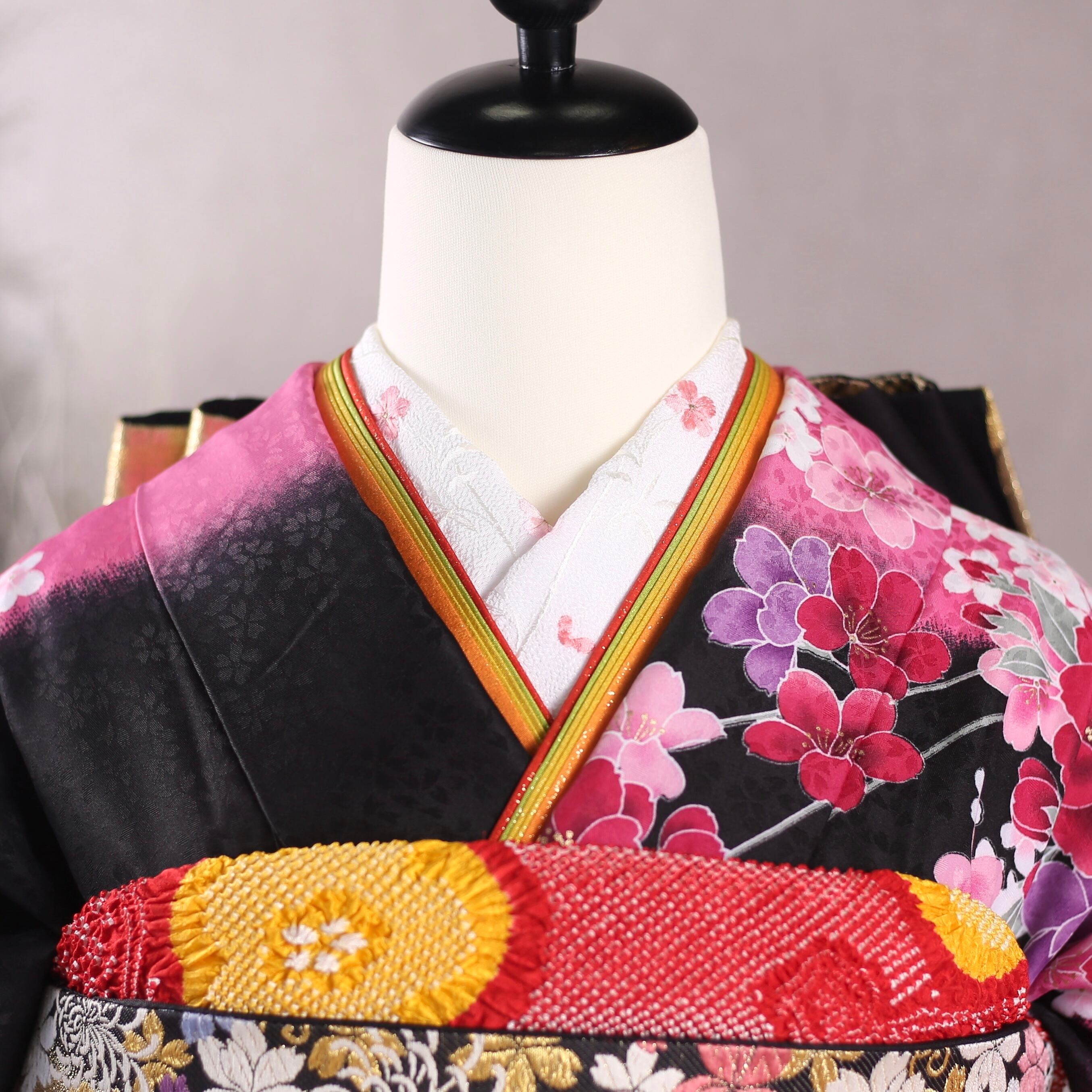 振袖フルセット 振袖セット 振袖 Lサイズ 黒×エレガント 美品 成人式 着物 晴れ着 6点セット KFN-97