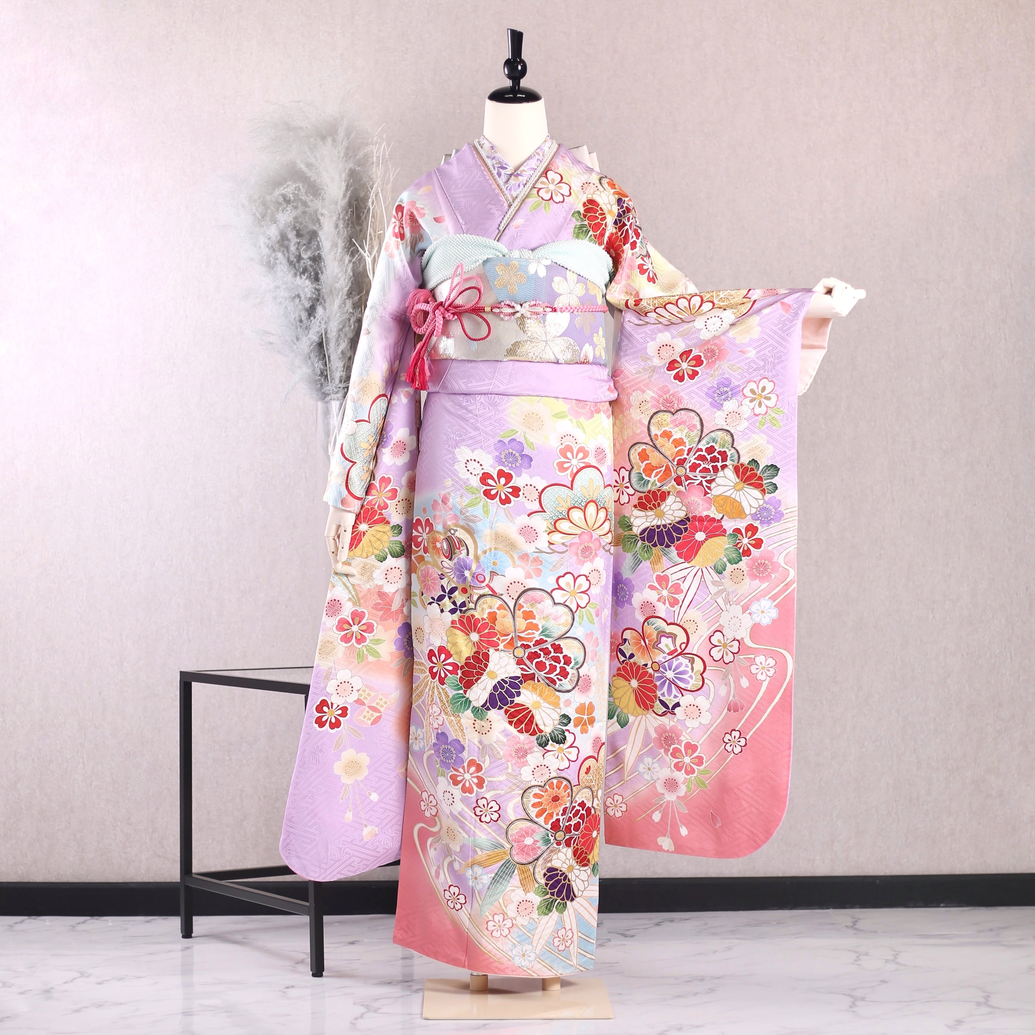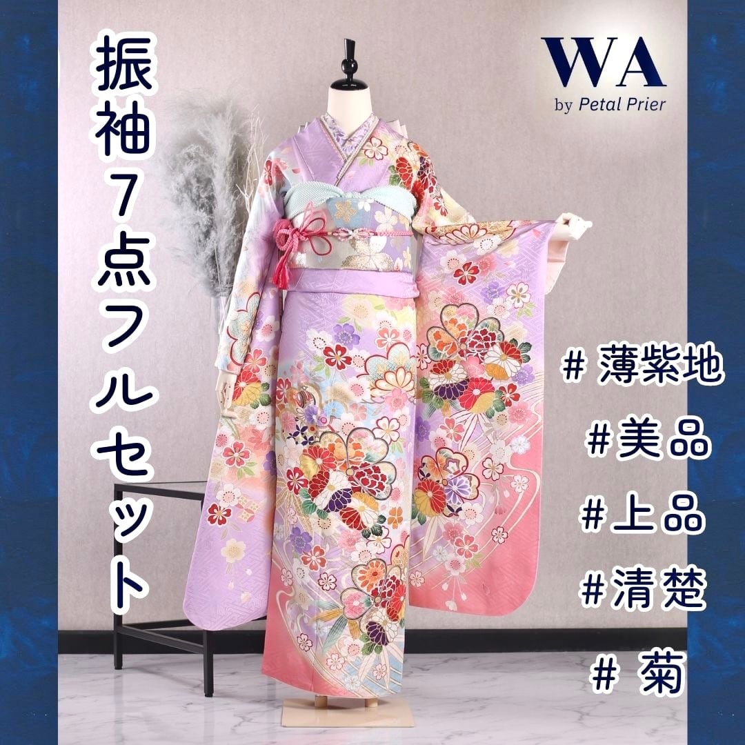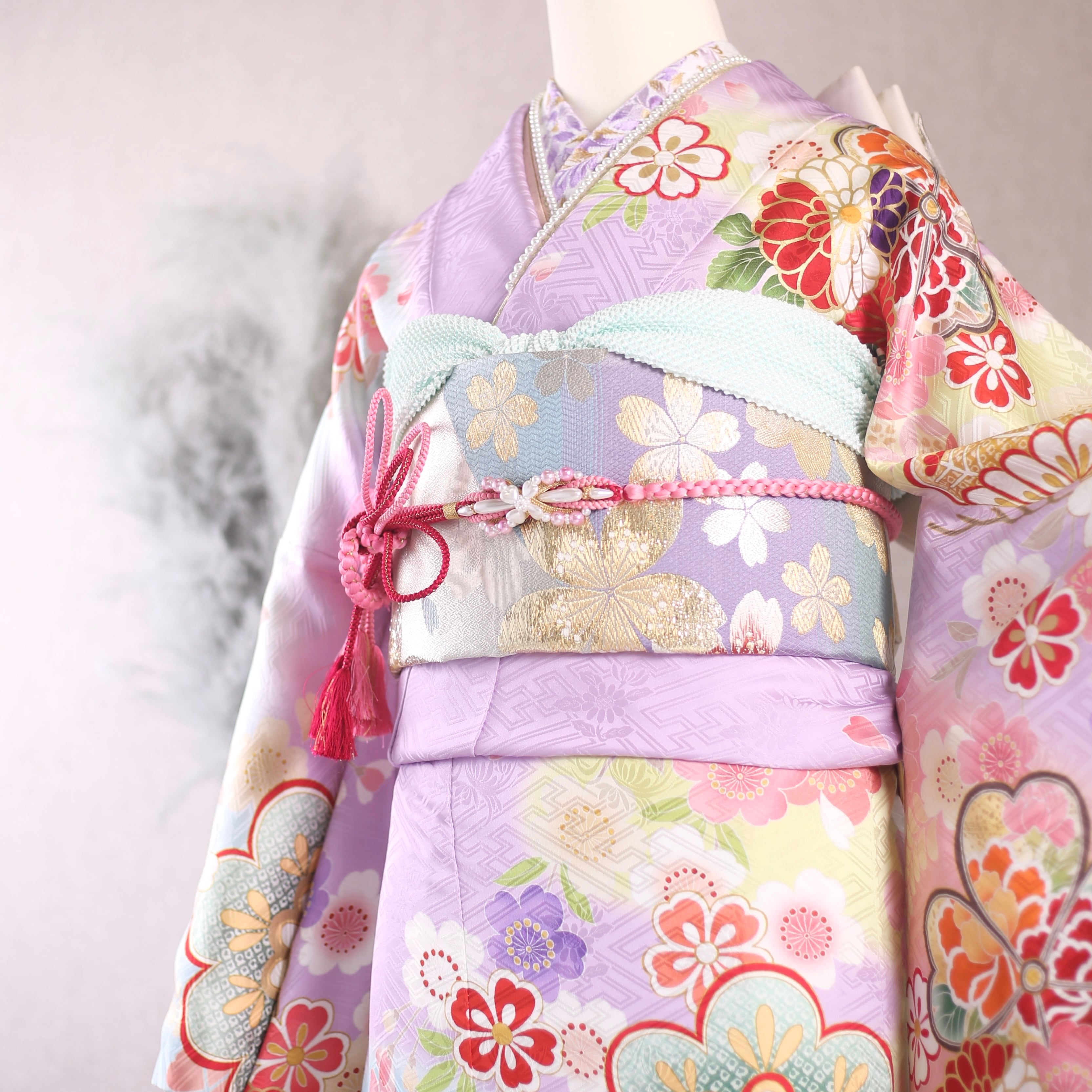 振袖フルセット 振袖セット 振袖 Lサイズ 薄紫×清楚 美品 成人式 着物 晴れ着 7点フルセット KF-126