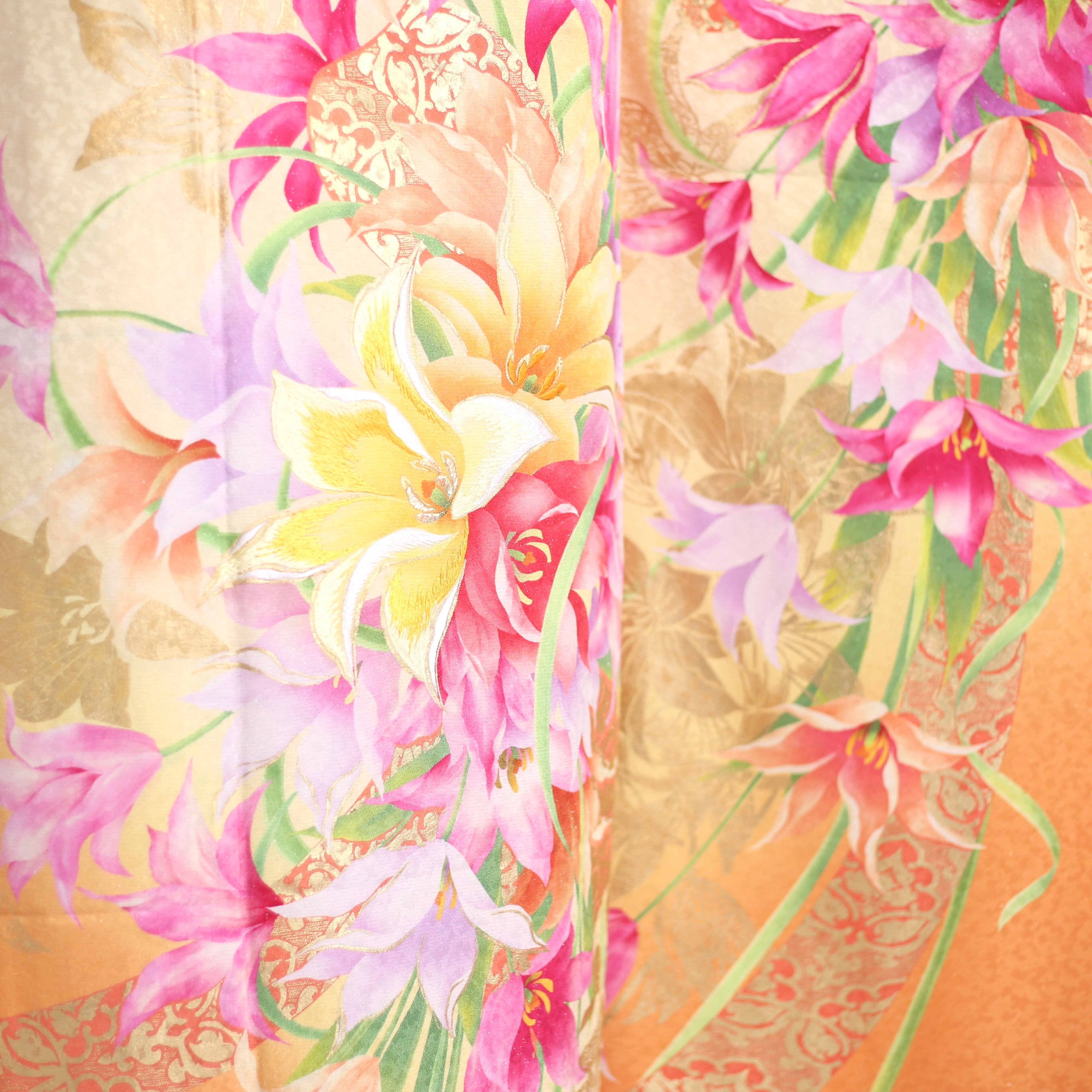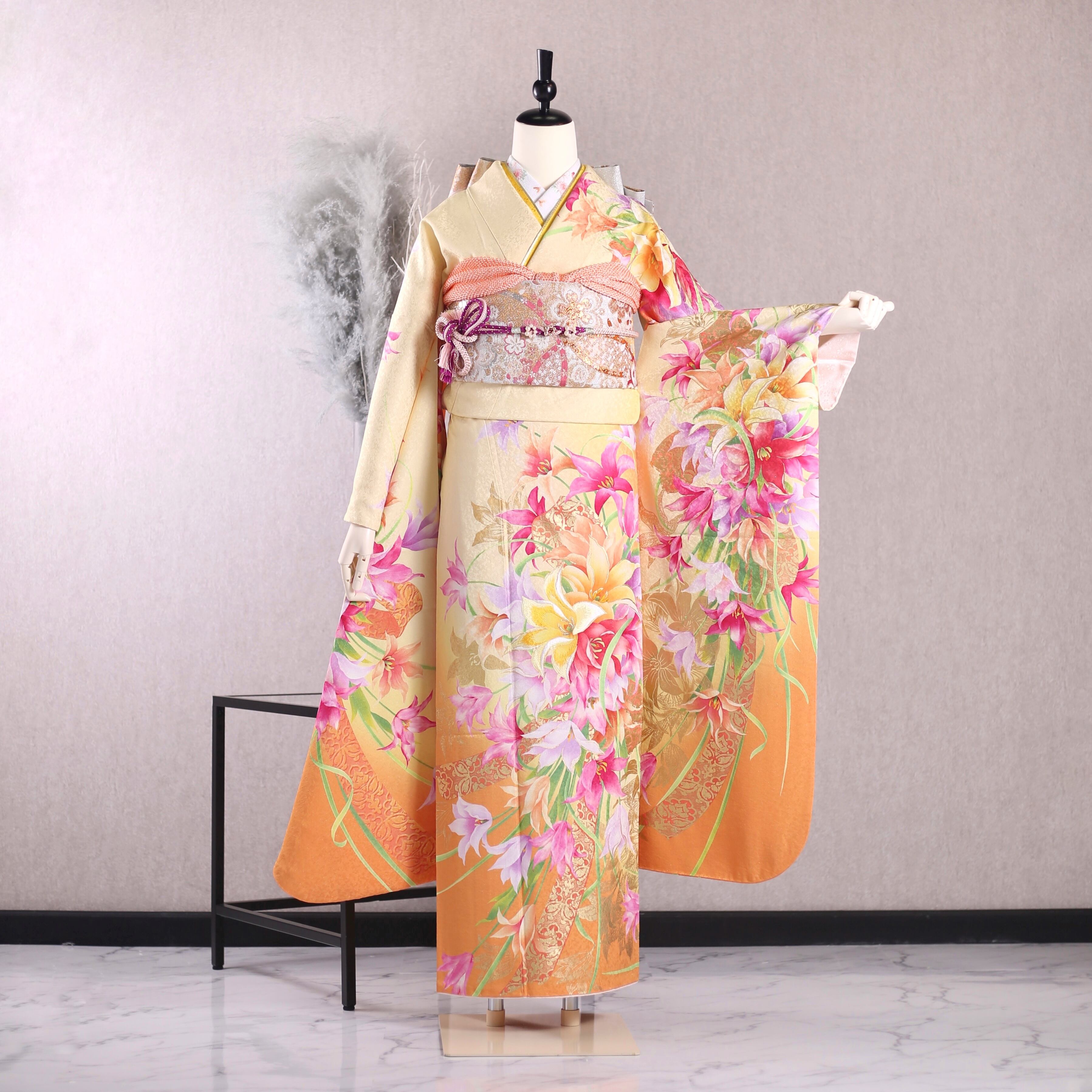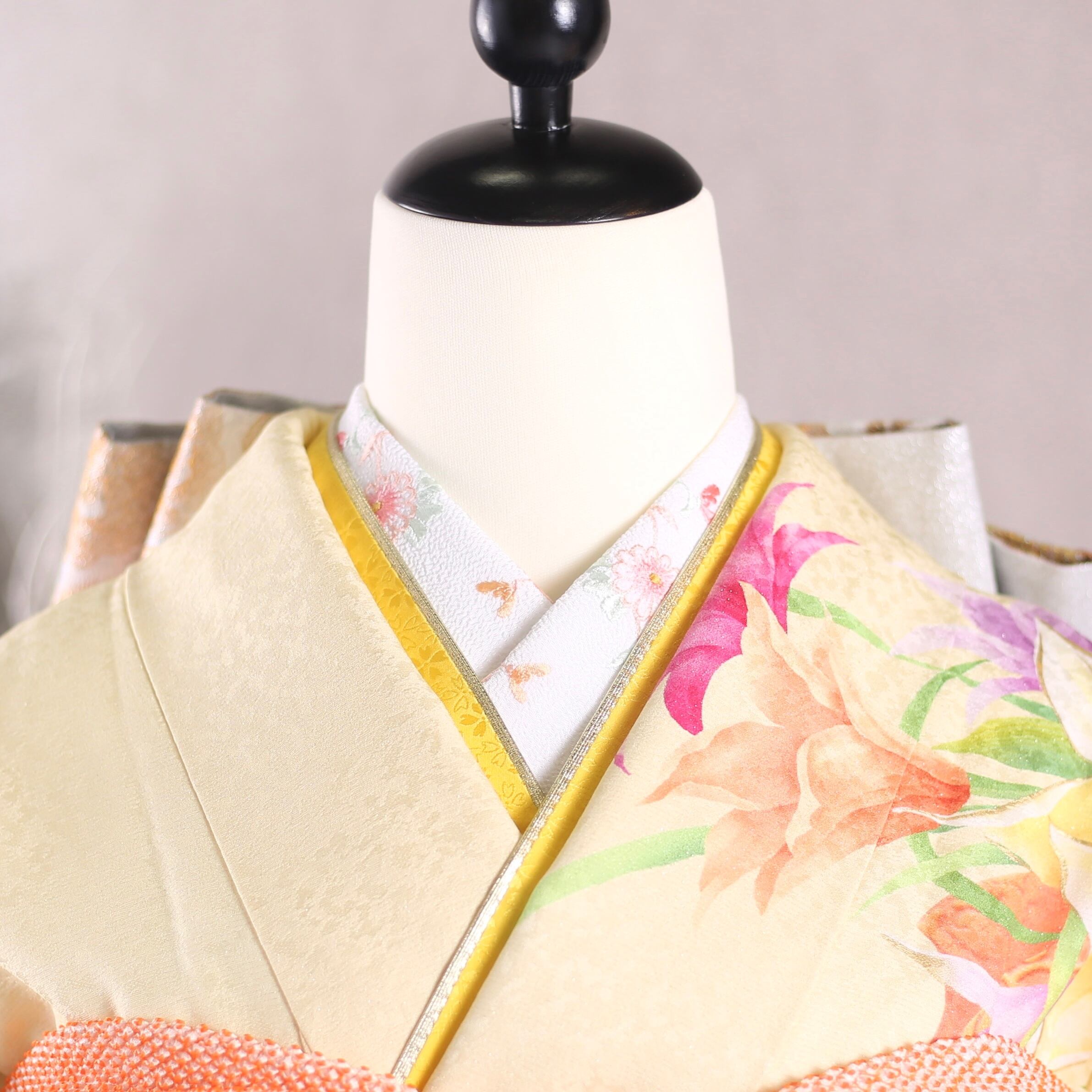 振袖フルセット 振袖セット 振袖 Lサイズ クリーム×エレガント 美品 成人式 着物 晴れ着 7点フルセット KF-142