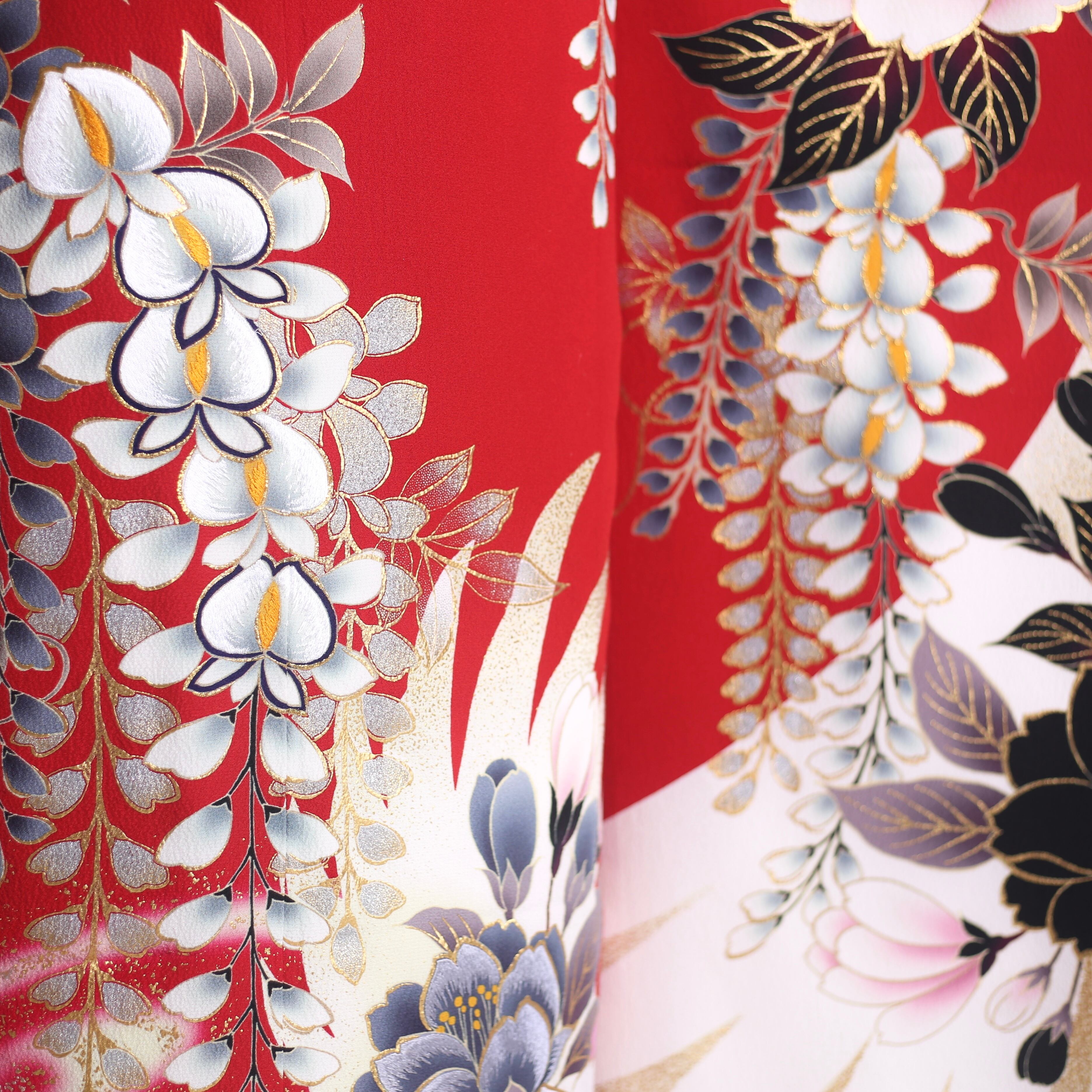 赤地に桜や藤が美しいモダンな振袖です。