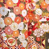 鮮やかな赤地に金駒刺繍や菊柄が特徴的な振袖です。