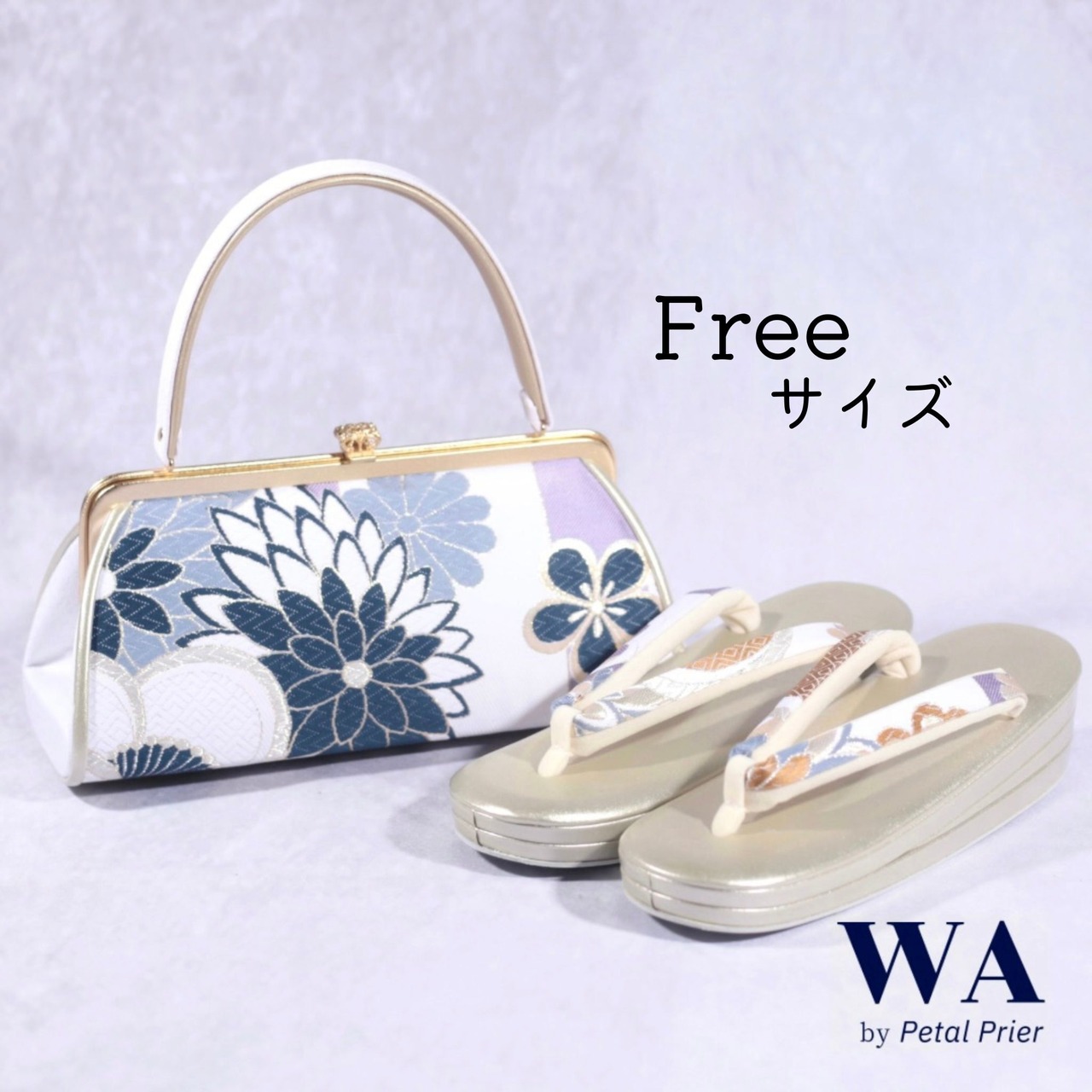 WA by Petal Prier セレクト 【草履・バッグセット】 ブルー× 帯地
