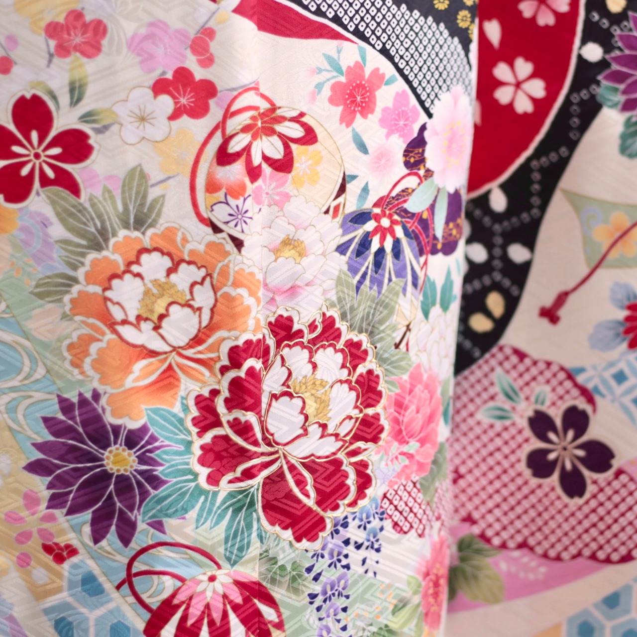 桜や牡丹の華やかさに黒が入ることで少しクールさを出してくれる一品です。