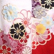 白地に赤のぼかしが入ったレトロモダン振袖です。