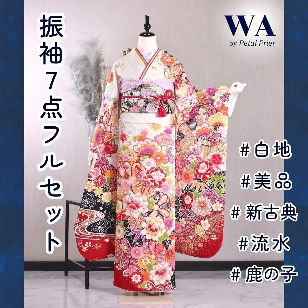 振袖フルセット 振袖セット 振袖 Lサイズ 白×新古典 美品 成人式 着物 晴れ着 7点フルセット KF-131