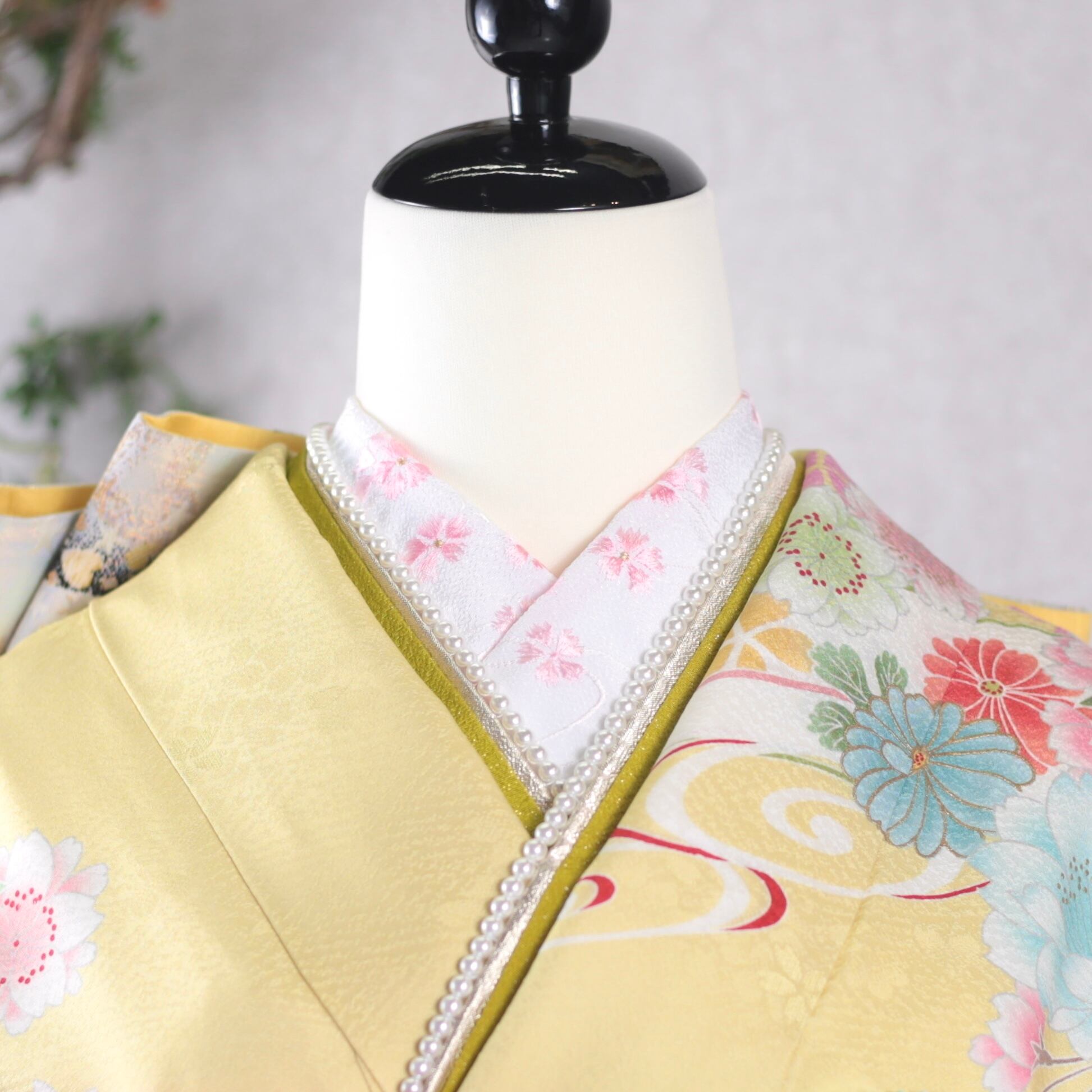 振袖フルセット 振袖セット 振袖 Mサイズ 黄緑×新古典 美品 成人式 着物 晴れ着 7点フルセット F-318
