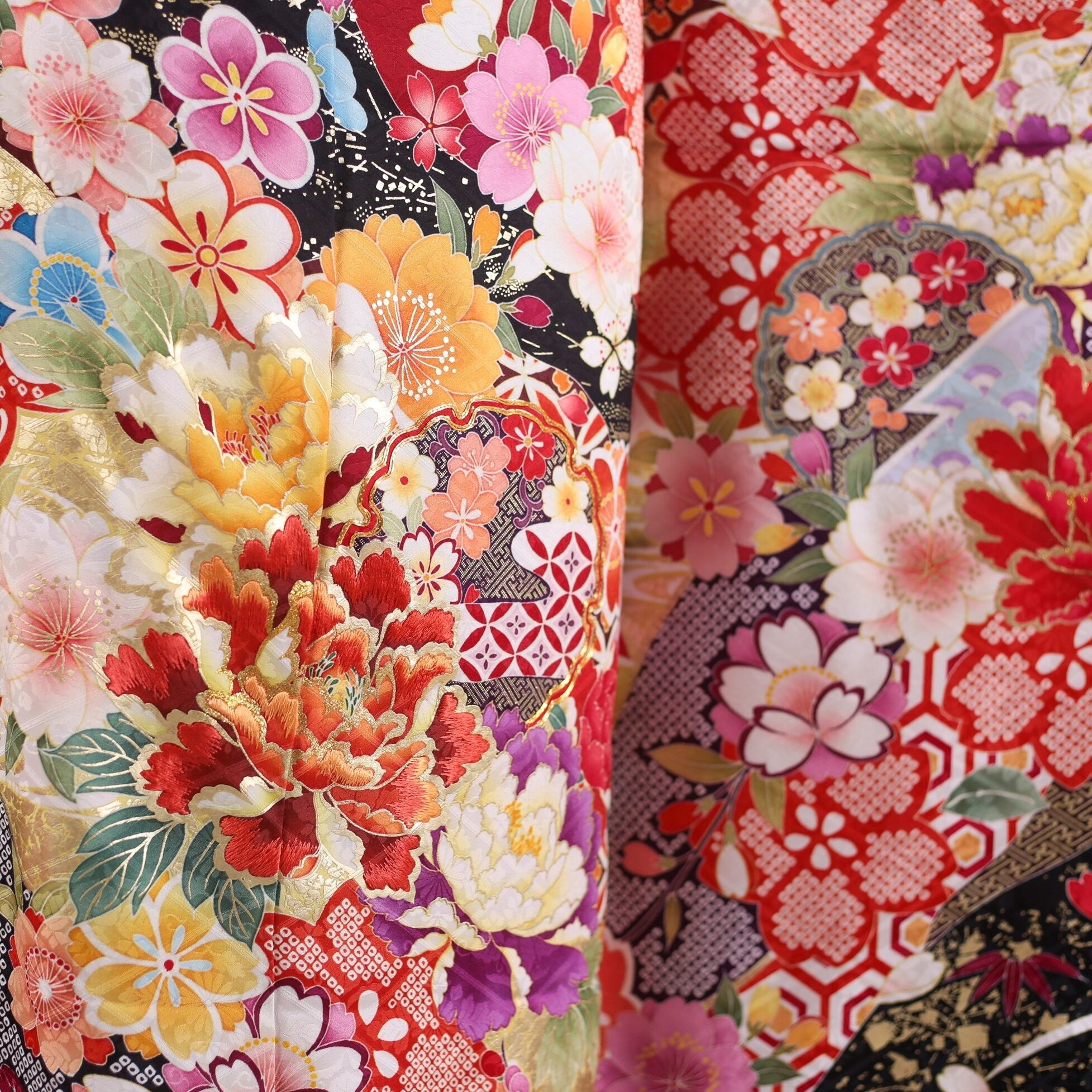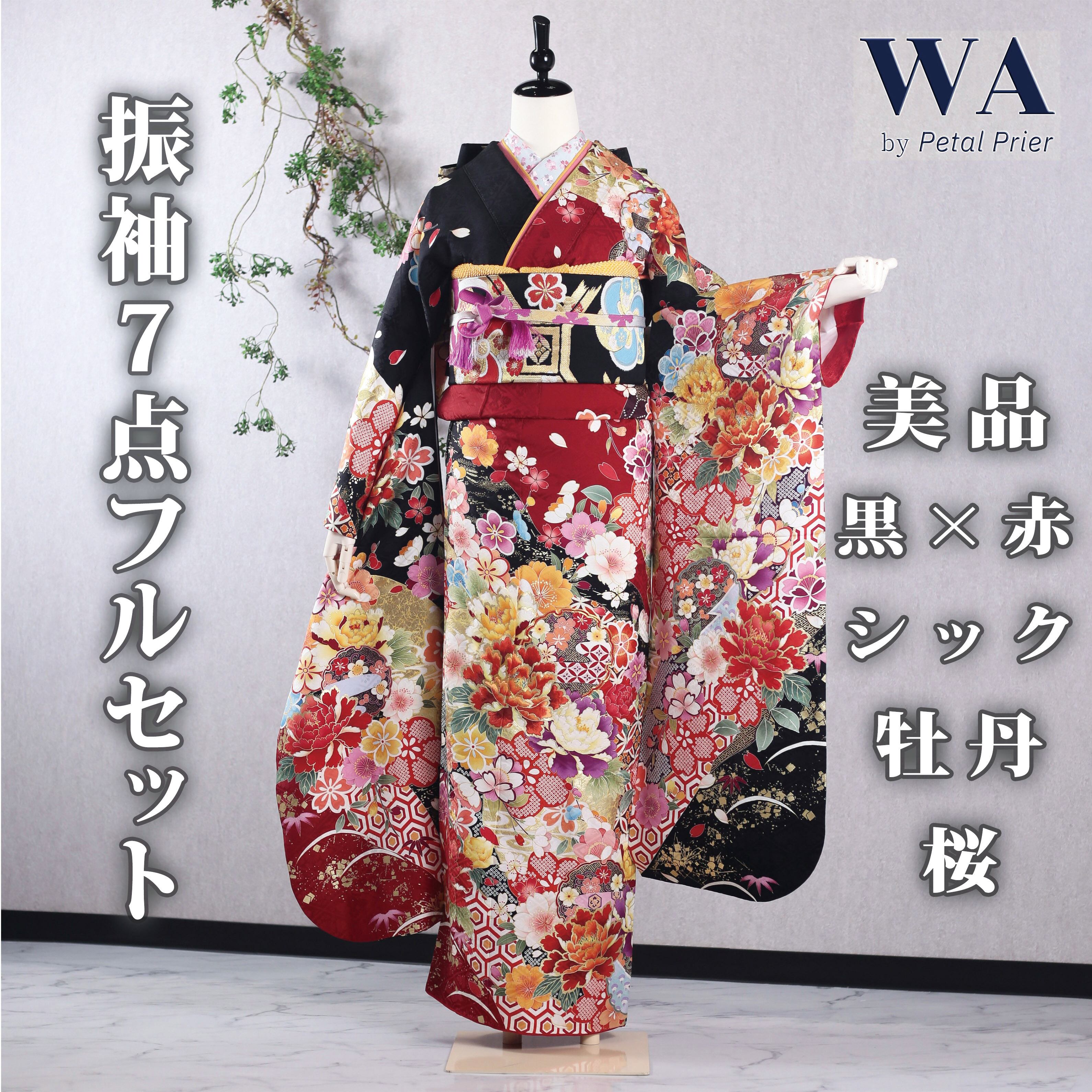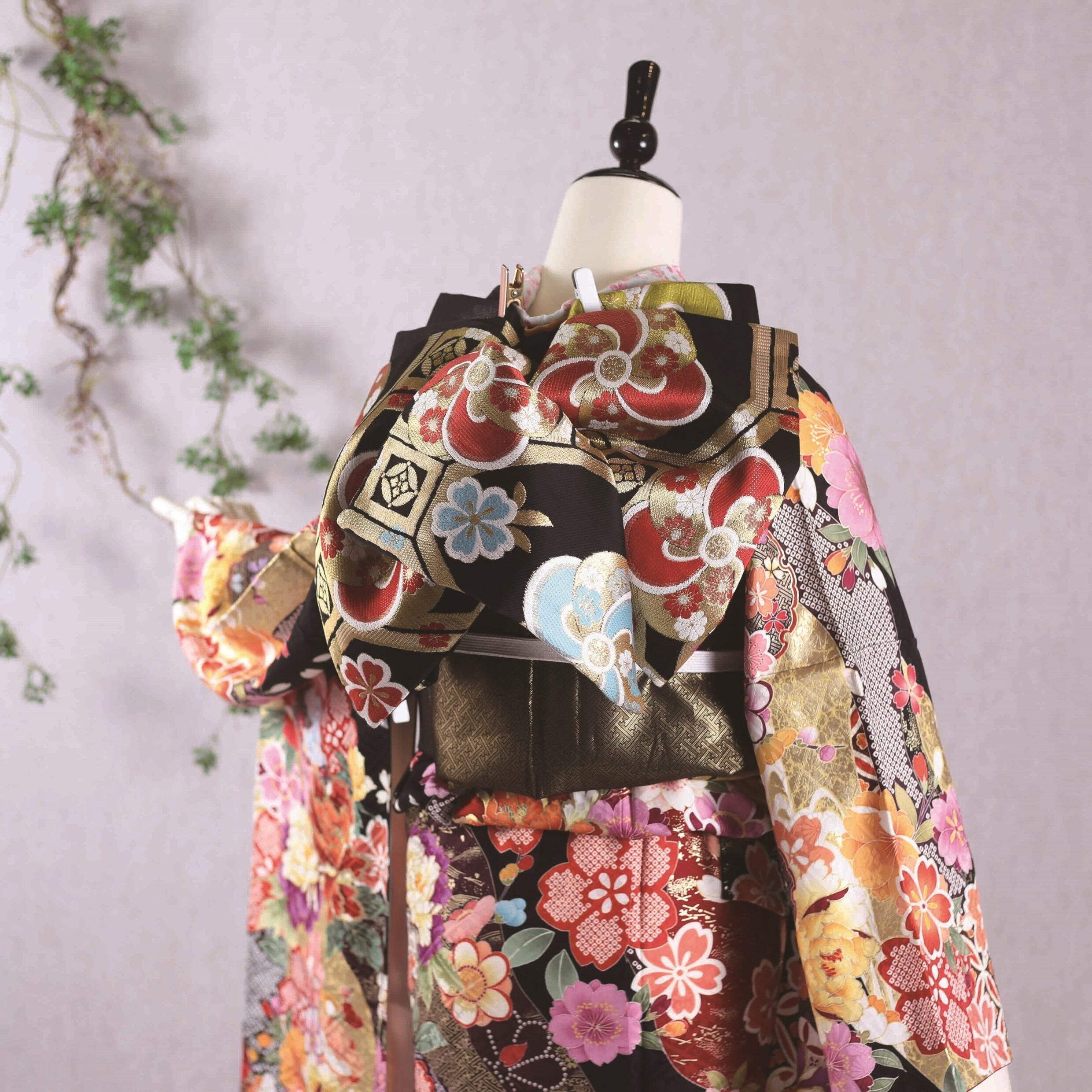 振袖フルセット 振袖セット 振袖 Lサイズ 黒×新古典 美品 成人式 着物 晴れ着 7点フルセット F-367