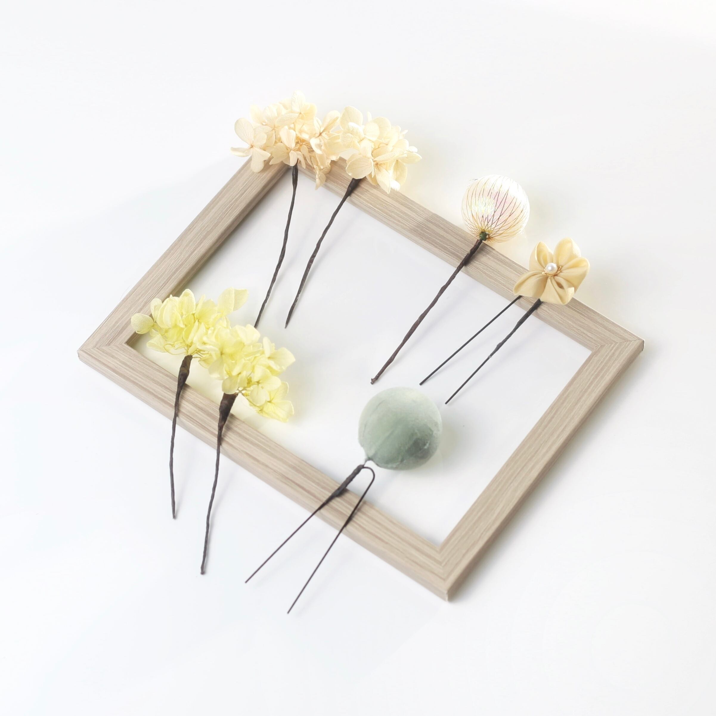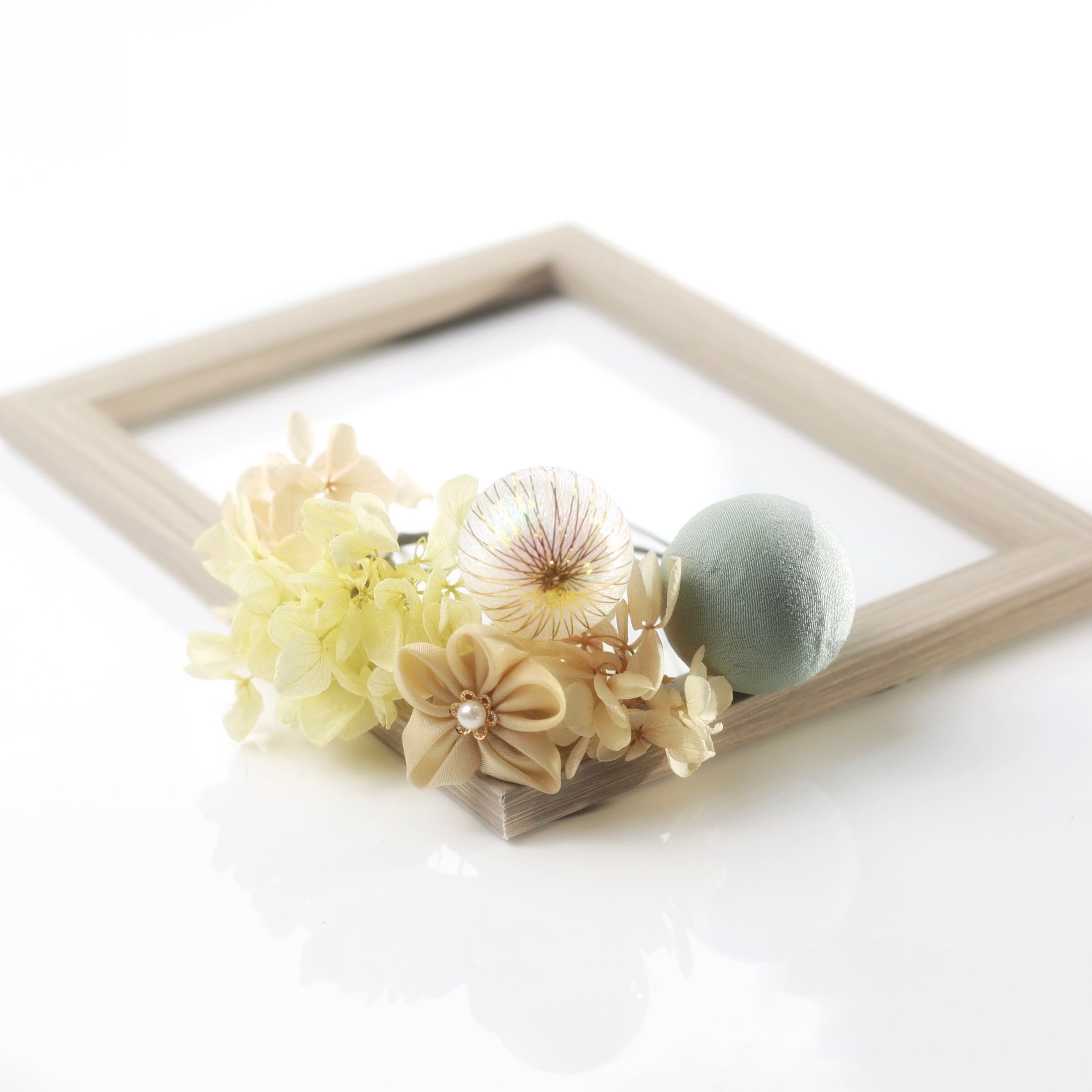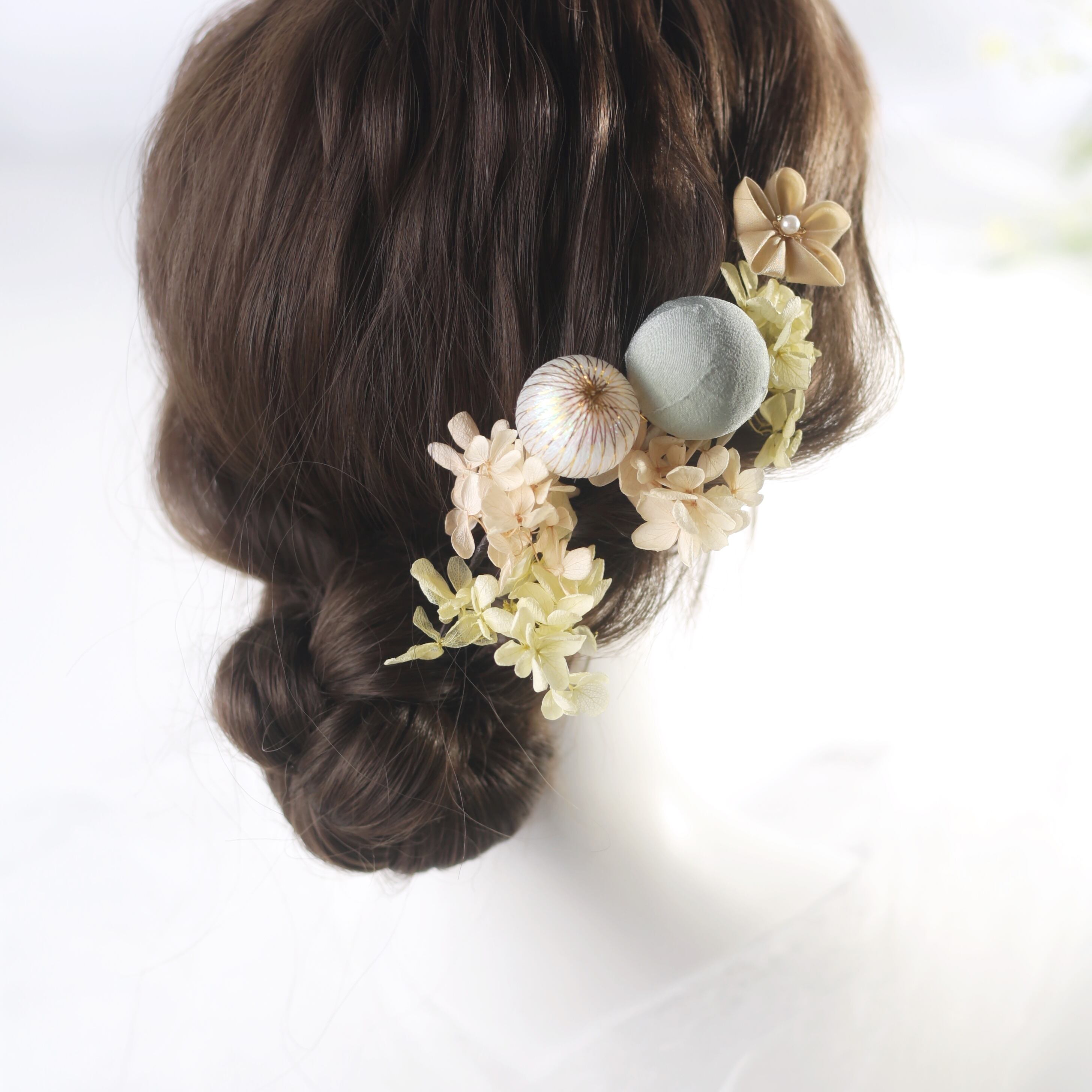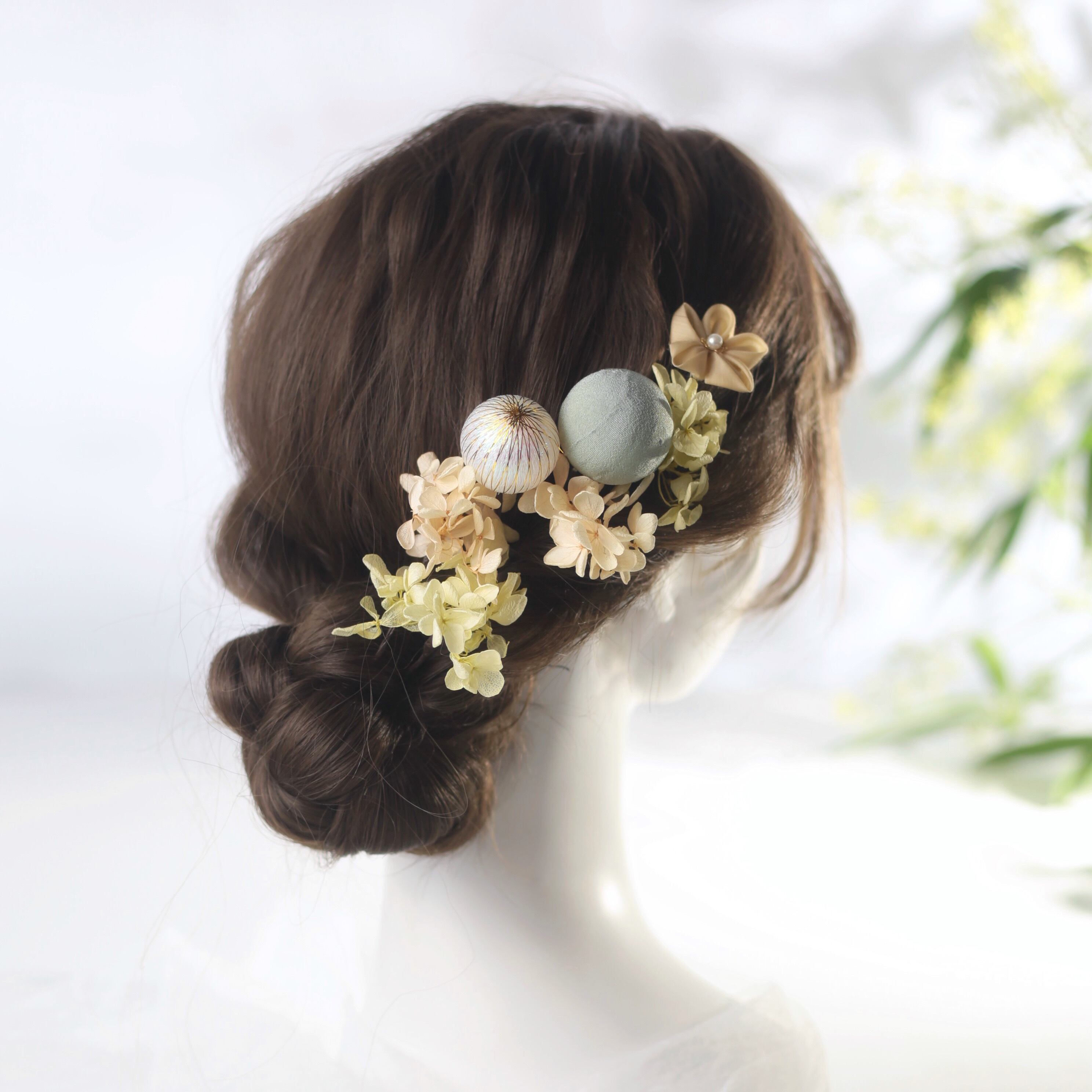 ミントカラーと丸いパーツが可愛い髪飾りです。