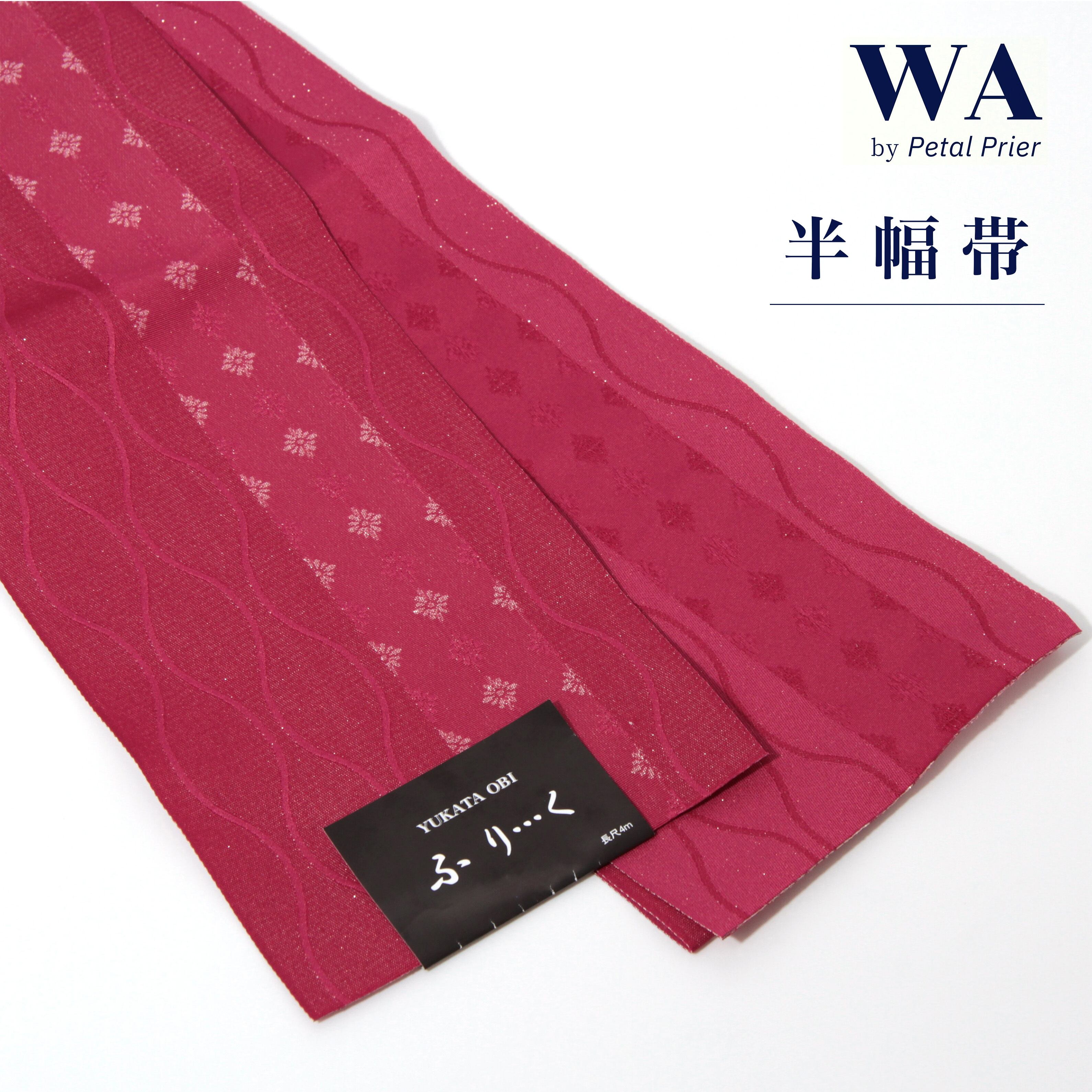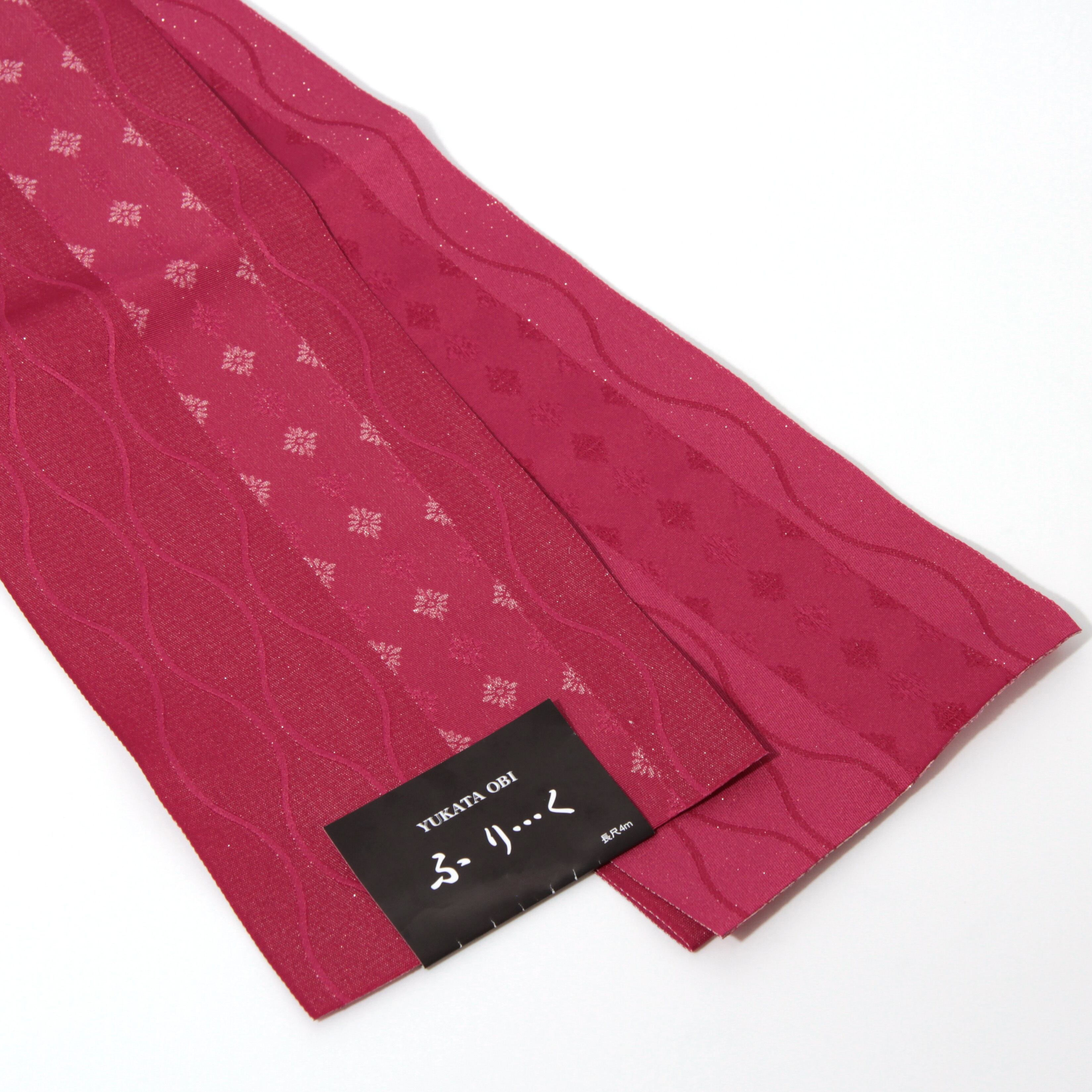 ラメ感のある薄手の生地で巻きやすく、シンプルで締めやすい半幅帯です。