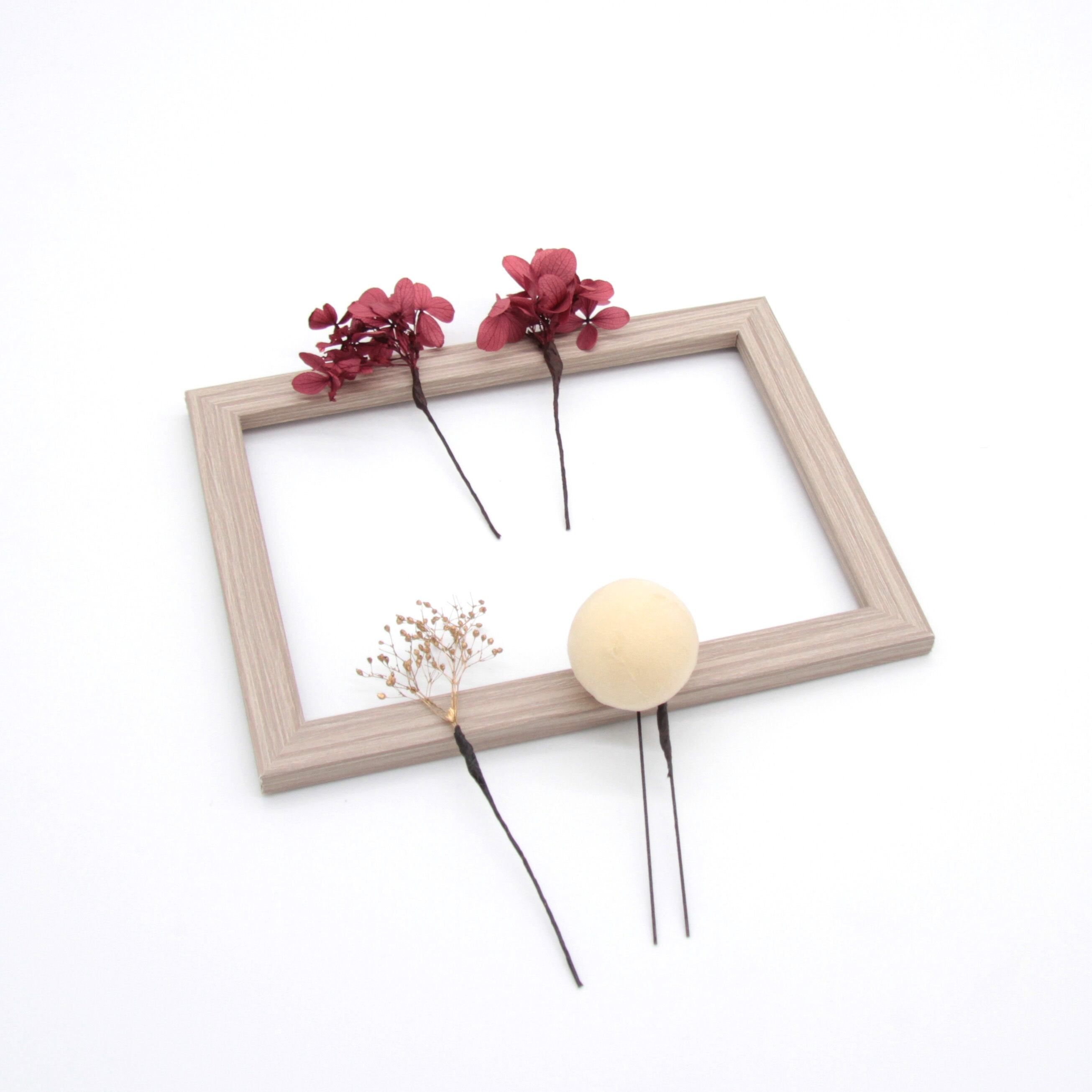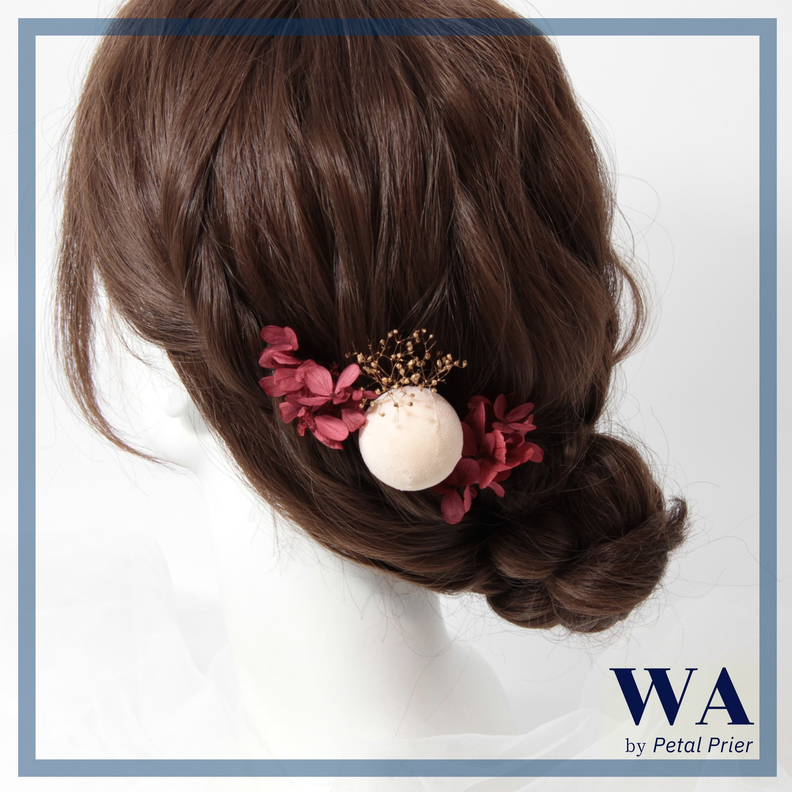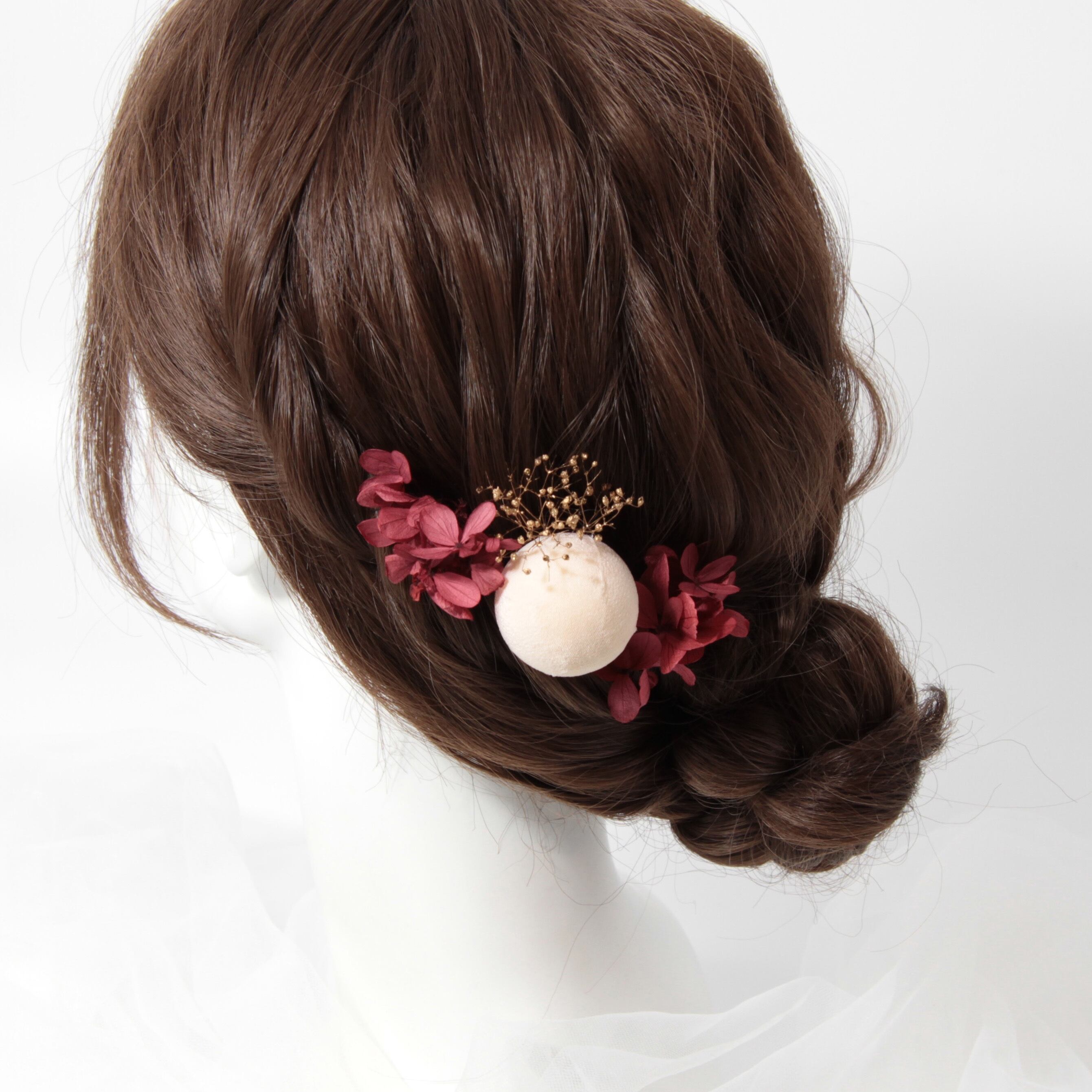 髪飾り 髪飾りセット 成人式 振袖 結婚式 ブライダル ヘッドドレス 卒業式 七五三 前撮り つまみ細工 成人式 前撮り ボルドー ホワイト あじさい つまみ細工 ドライフラワー K-171 | WA by Petal Prier