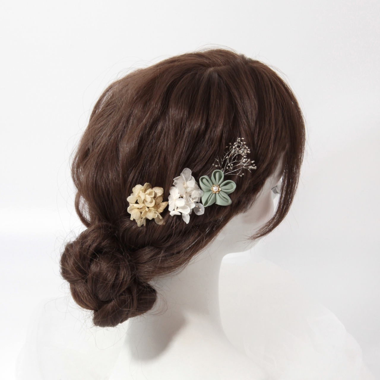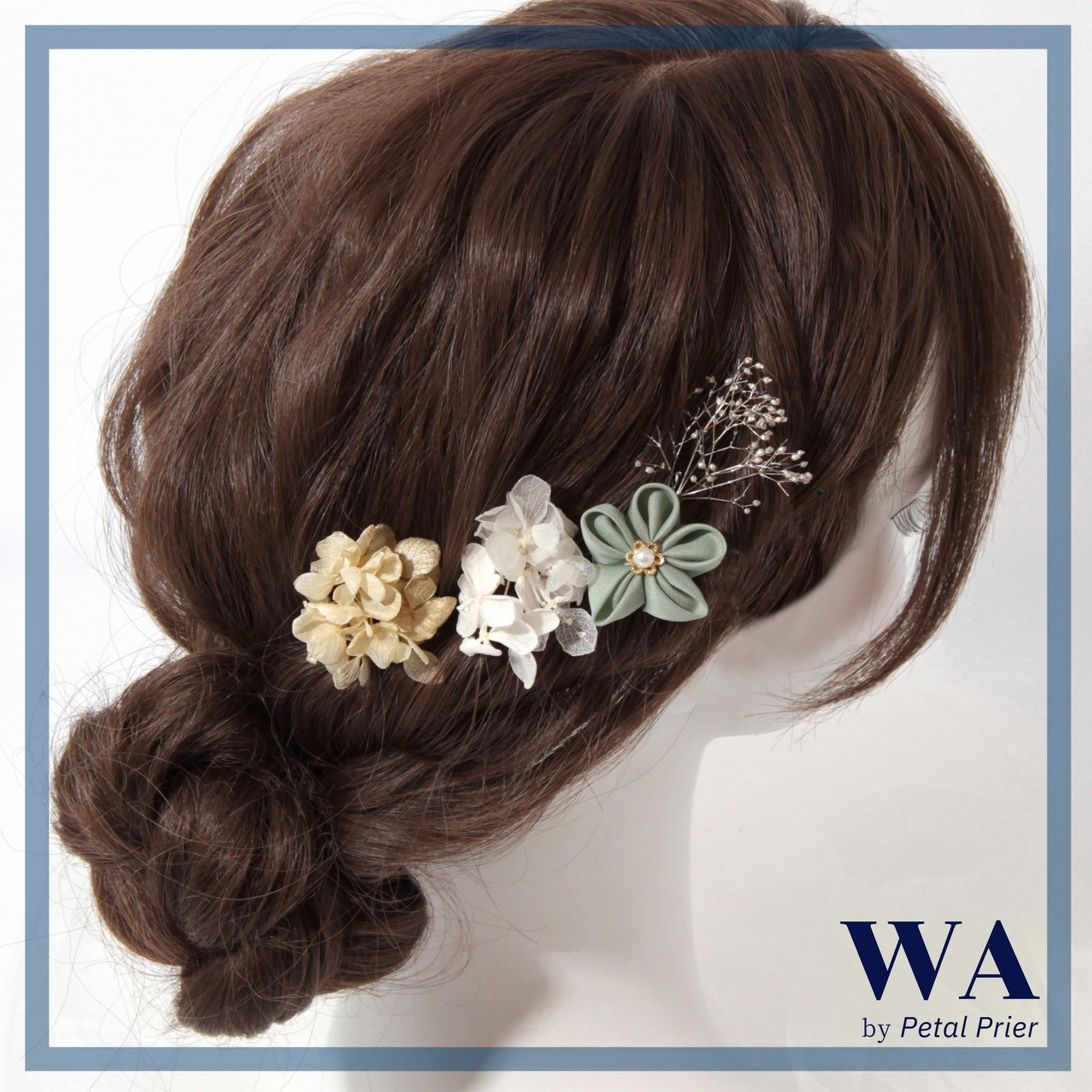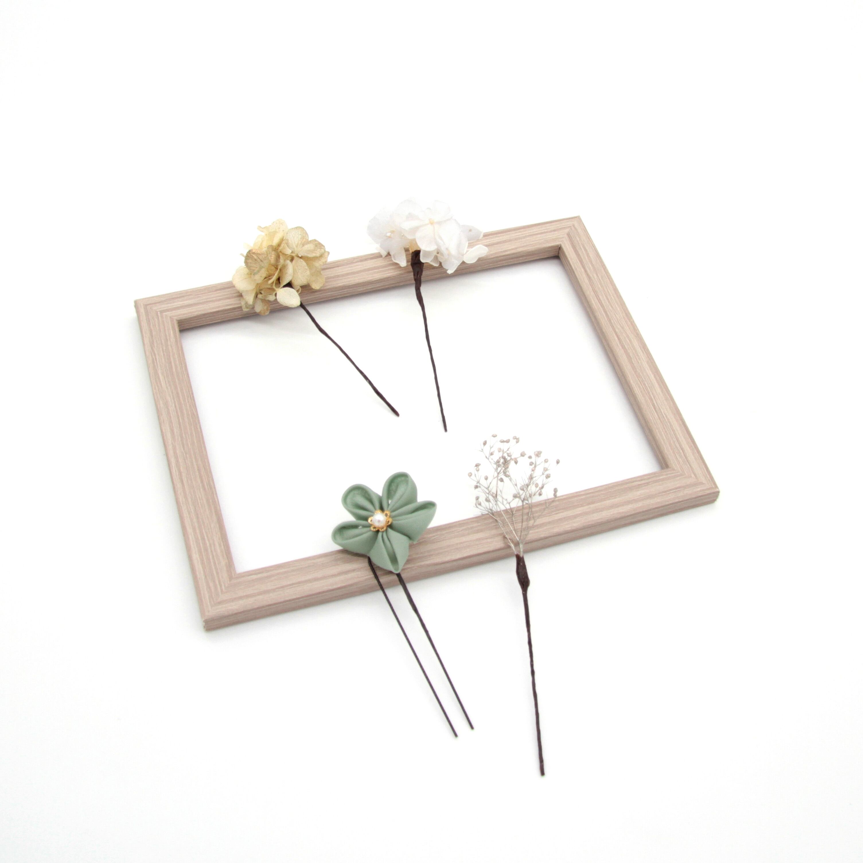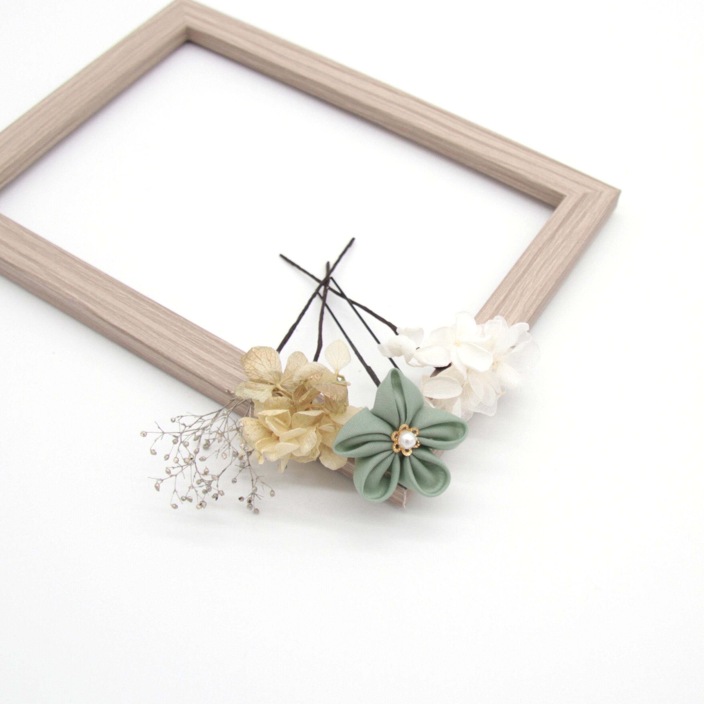 髪飾り 髪飾りセット 成人式 振袖 結婚式 ブライダル ヘッドドレス 卒業式 七五三 前撮り 水色 くすみブルー 白 ホワイト あじさい つまみ細工 ドライフラワー K-175 | WA by Petal Prier