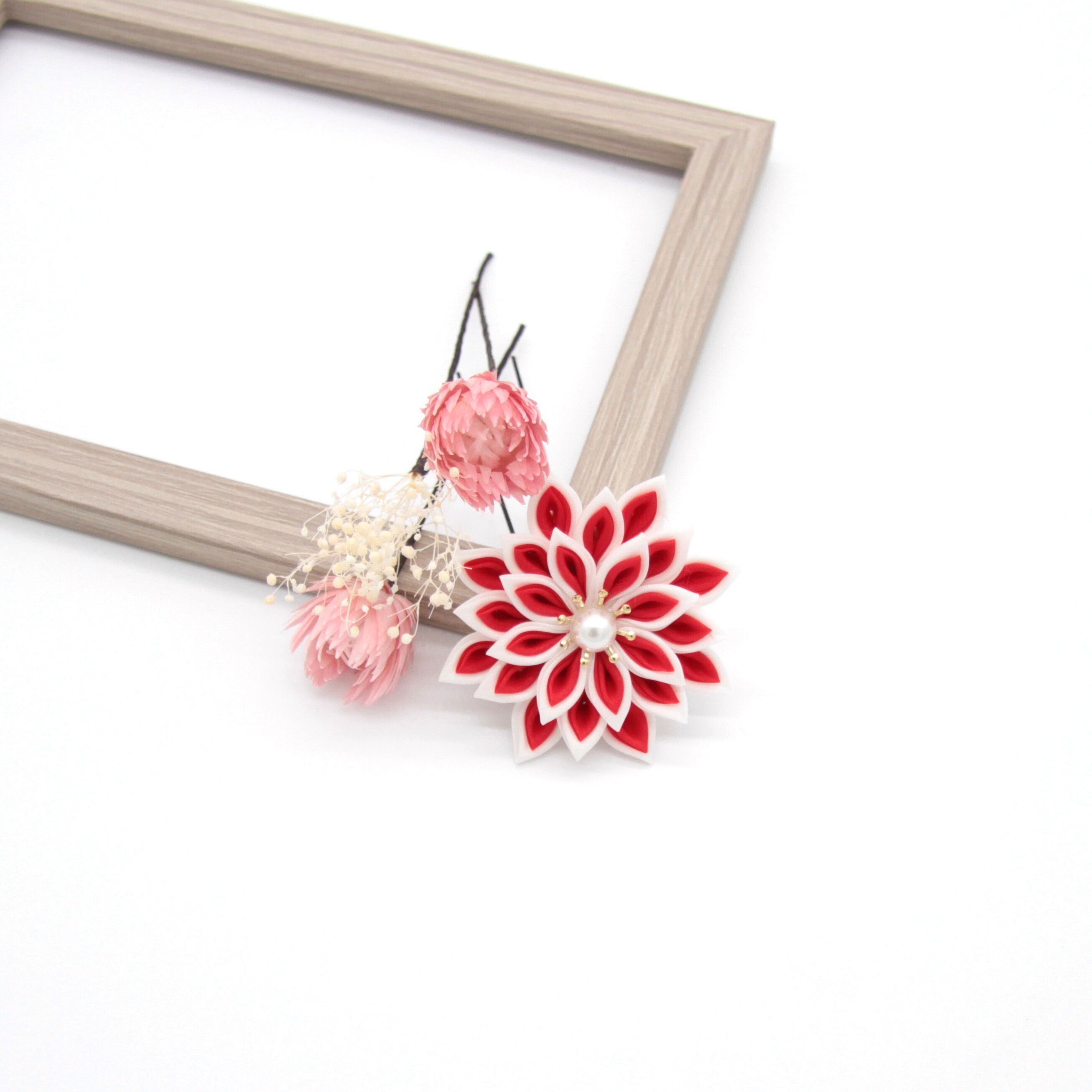 ピンクと赤で大人っぽく可愛い髪飾りです。