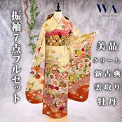 振袖フルセット 振袖セット 振袖 Lサイズ クリーム×新古典 美品 成人式 着物 晴れ着 7点フルセット F-430