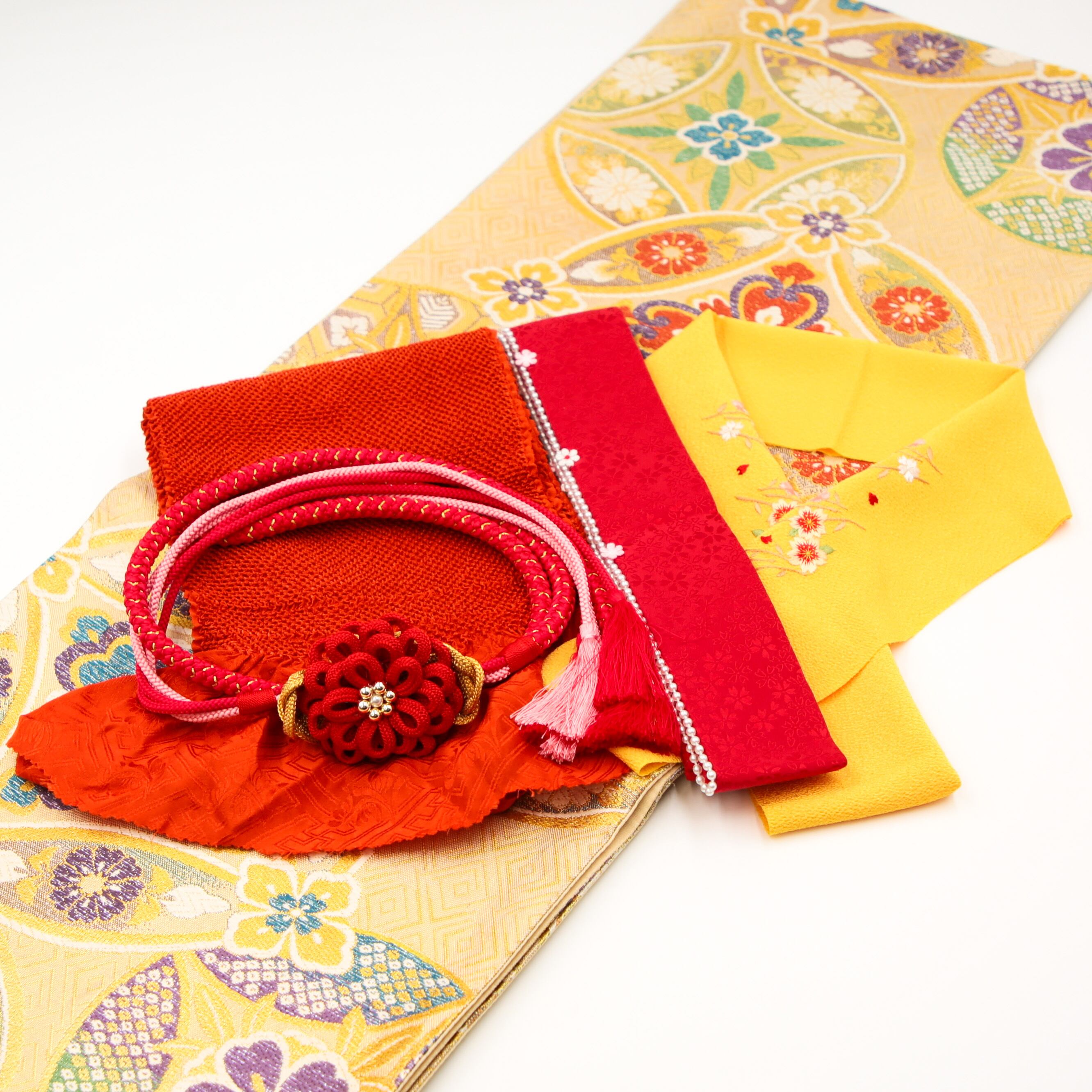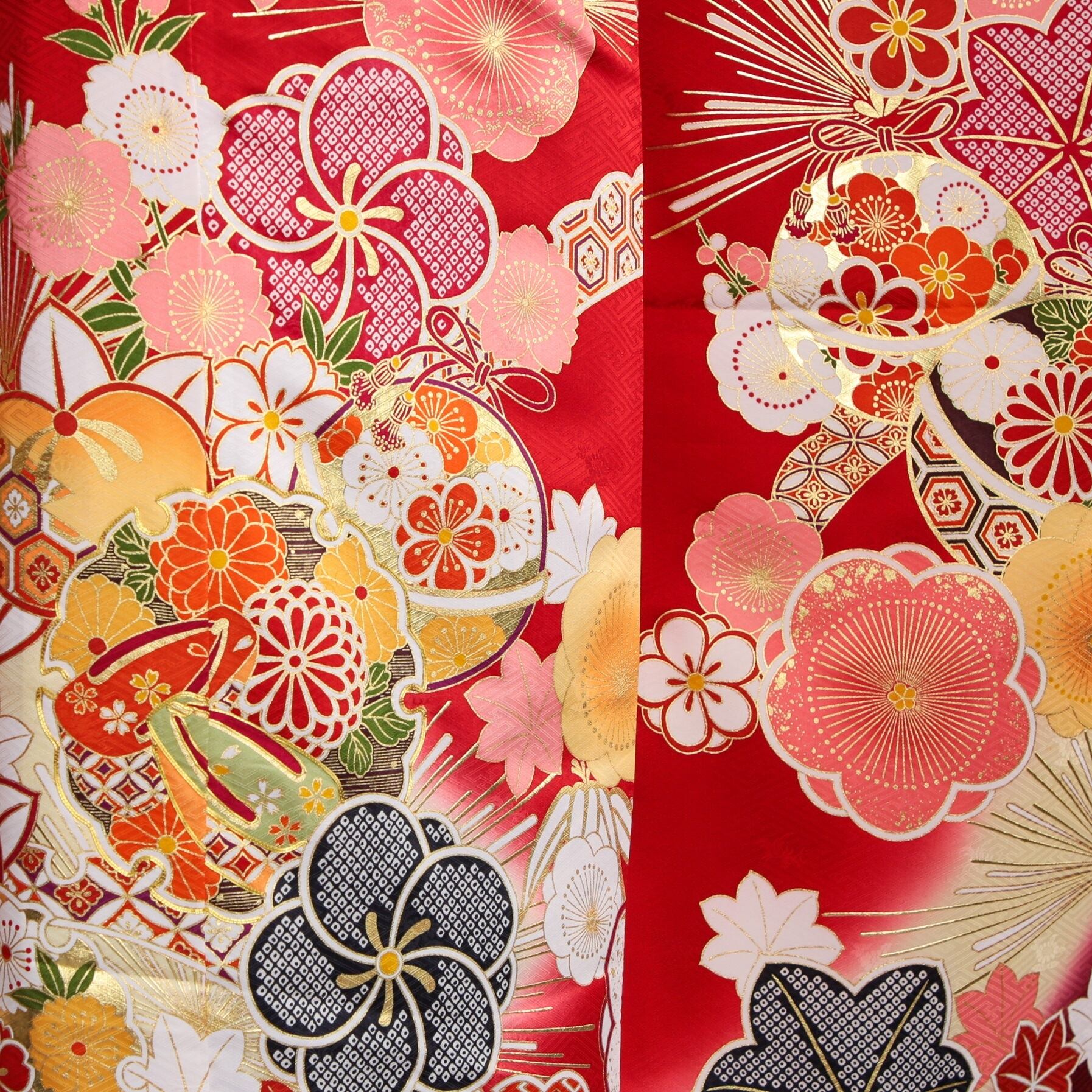 鞠や雪輪など縁起の良い柄も多く、帯締め、帯揚げが赤で統一された可愛いデザインでおすすめです。