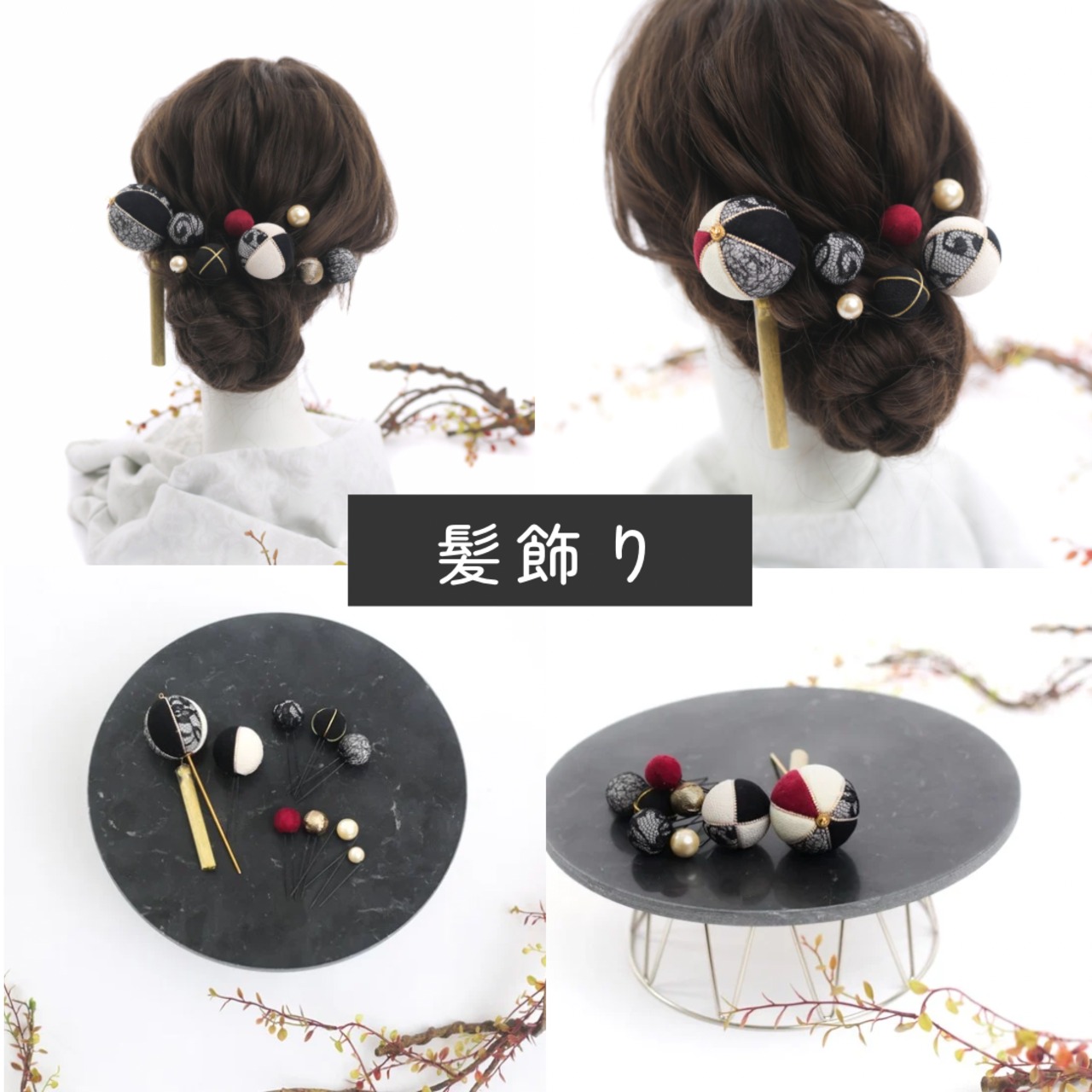 ちりめんやレースなど様々な素材のボール髪飾りです。