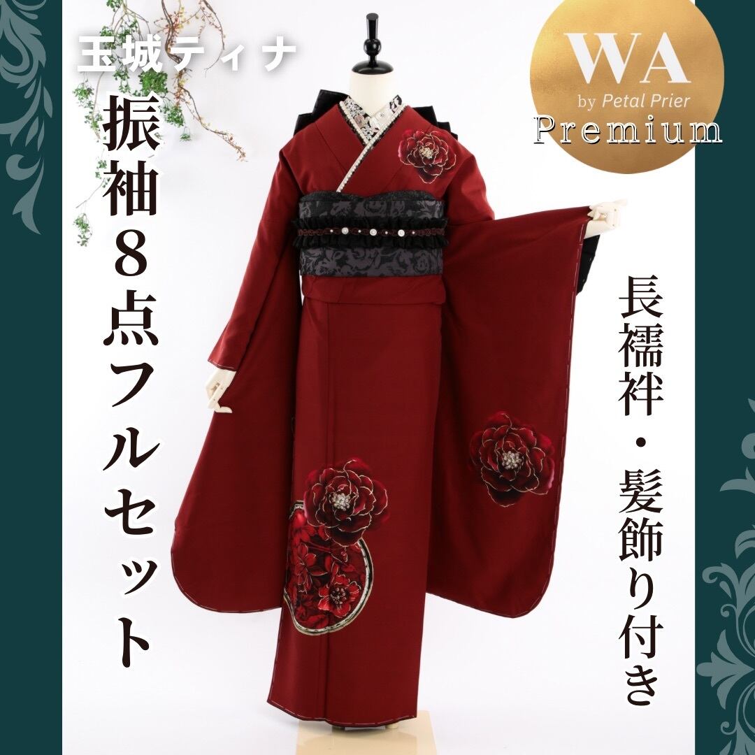 玉城ティナ 新品同様 振袖8点フルセット 振袖フルセット 振袖セット 振袖【赤】M〜Lサイズ アンティーク調 髪飾り FTT-3